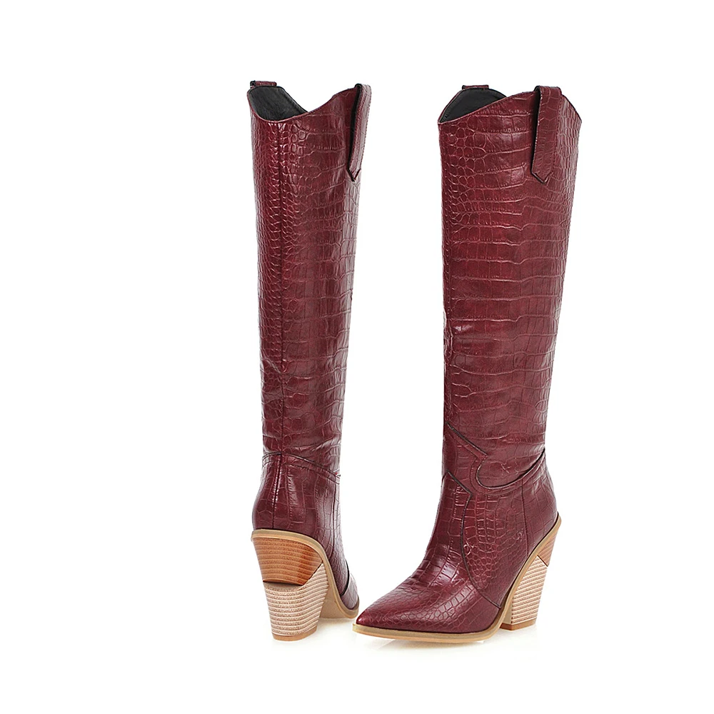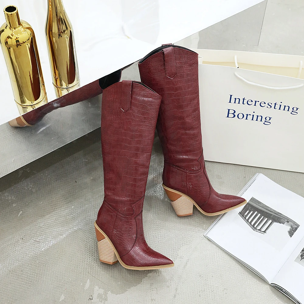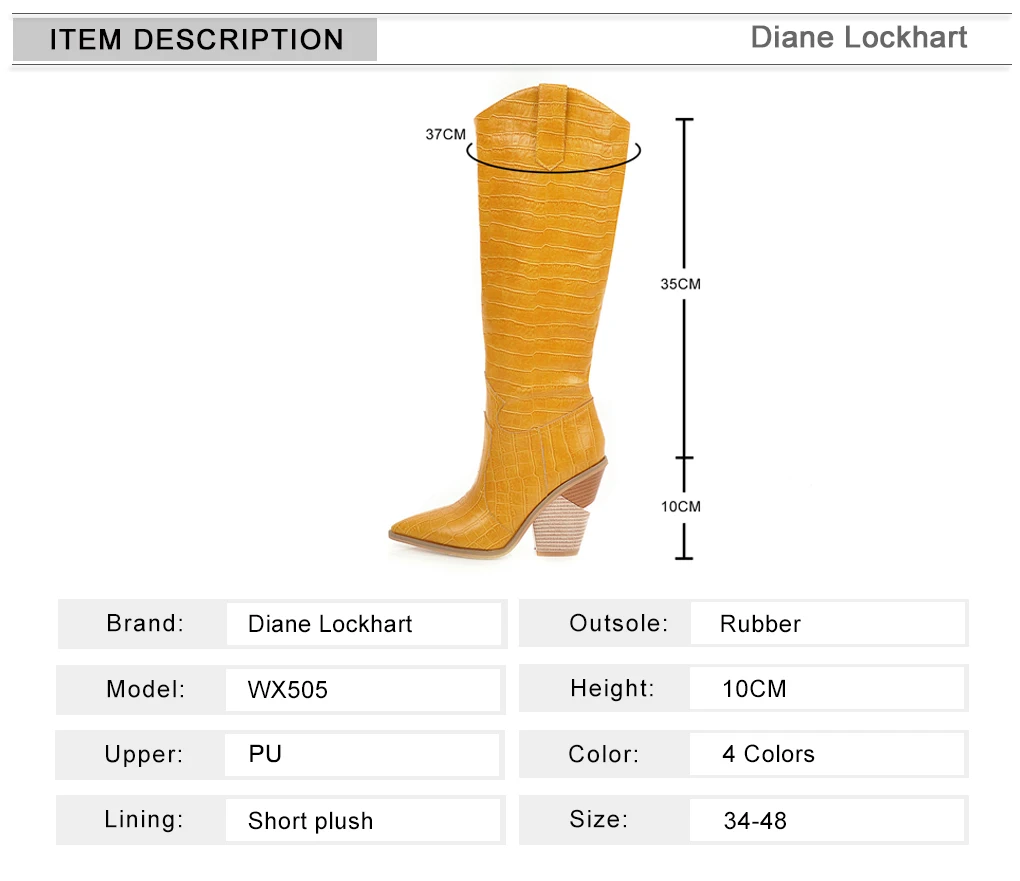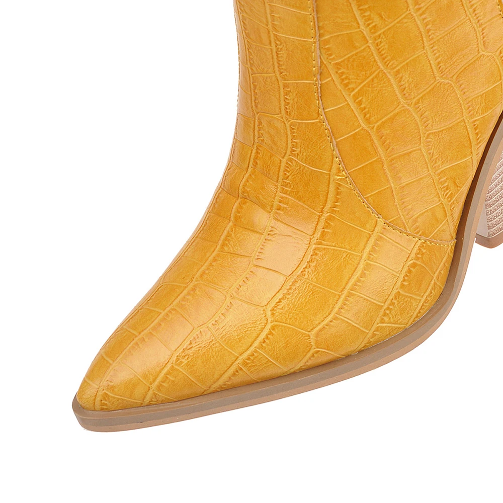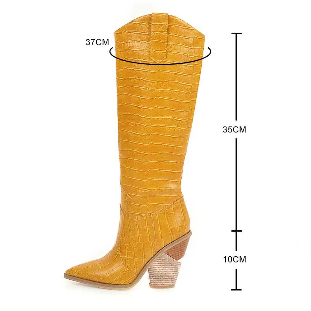 Сапоги до колена; Ковбойские сапоги для женщин; Длинные зимние сапоги с острым носком; Мотоботы на танкетке; Цвет черный, желтый, белый