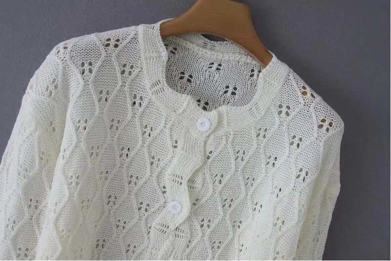 Осень 2019, новинка, вязаный крючком однобортный Кардиган на пуговицах, свитер, женский джемпер с длинным рукавом, вязаная одежда
