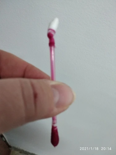 Удобная походная штучка, цвет именно такой, как и хотела, вишня. Звезду сняла за то, что наполнитель не сразу перетекает к правильному тампону, а немного красит и тот, который сломан. Потом неудобно держать, т.к. помада красит пальцы. Не липнет, не даёт ощущения постороннего вещества на губах — нормальный жидкий тинт.