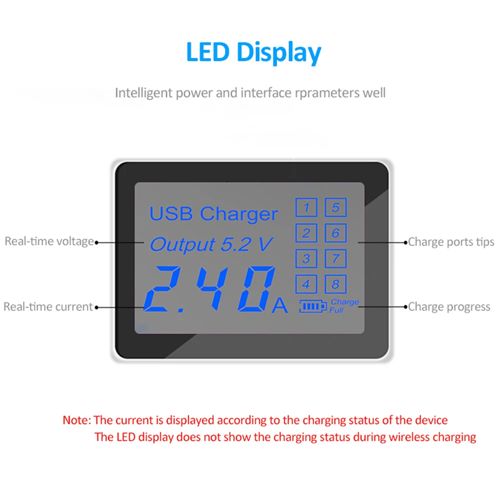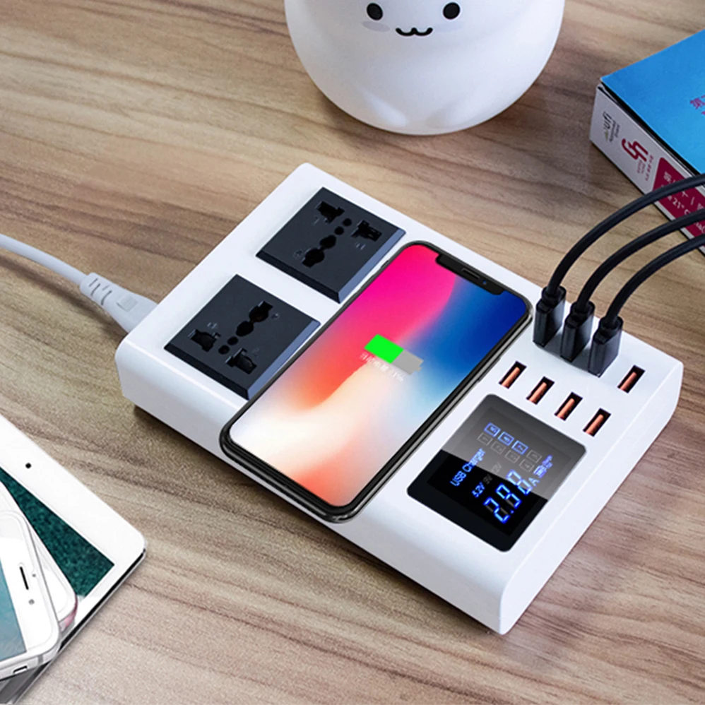 Быстрое беспроводное зарядное устройство QI с 8 портами, быстрая зарядная станция со светодиодным дисплеем, настенное зарядное устройство USB для HUAWEI iPhone 11 Pro, 8 X, XR