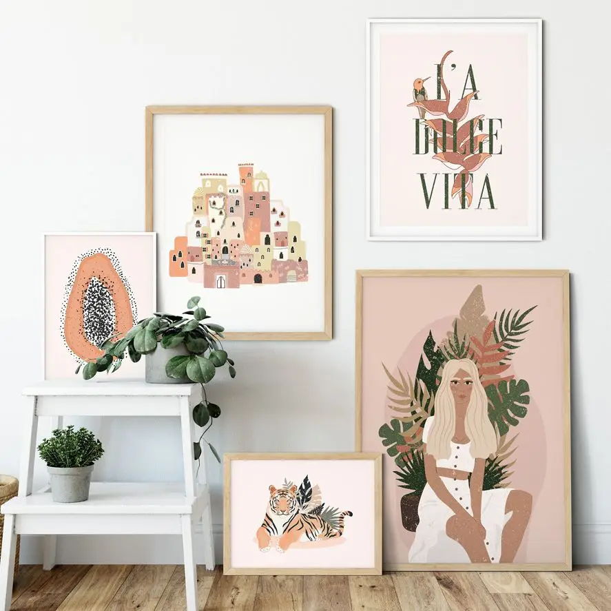 Абстрактная Мода Винтаж девушка тигр растение Настенная живопись холст скандинавские постеры и принты настенные картины для декора гостиной