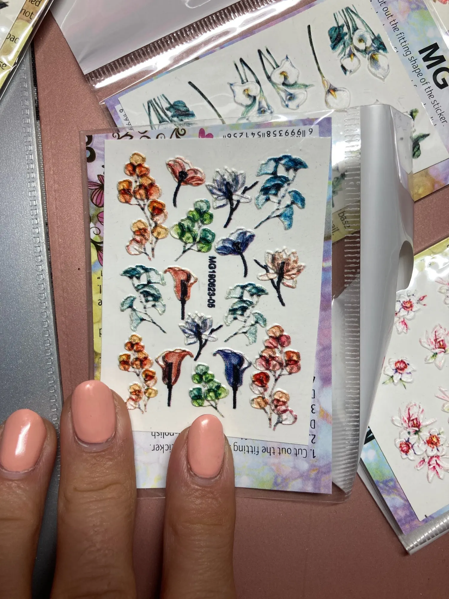 хорошие, яркие наклейки. в работе ещё не использовала, но на первый взгляд все ок. разве что немного крупноваты для ногтей.размер попыталась показать в сравнении с ногтем, а у меня они довольно длинные.на короткие не понятно как будет ложиться. время покажет.заказала 26.10, 3.12 принесли большой пакет, общий на 5 заказов с разных магазинов.помимо прочего, заказала ещё другие наклейки, от другого продавца.вообще, у меня много слайдеров с Али экспресс, использую в работе, нет вижу ничего предрассудительного в этом, и пока все были ок.посмотрим как поведут себя эти объемные.заказала три вида, за каждый отдала 192руб, с платной доставкой.с продавцом не общалась, не было необходимости.в каждом наборе есть инструкция по нанесению