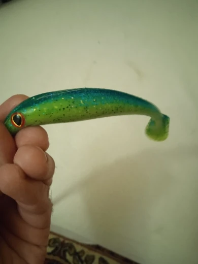 Резину получил, впечатления неоднозначные. Скажем на 4 из 5, размер явно меньше 125 мм, думаю 115 в лучшем случае, резина мягкая что хорошо и плохо одновременно, для офсета гуд, а вот на джиг голову врядли пойдёт, хотя по форме ( широкая) сделана как бы для джиг головки... Есть 150 размер, нужно попробывать ещё такую...