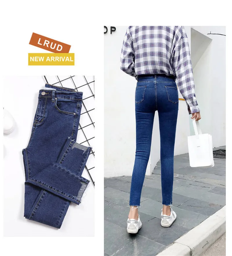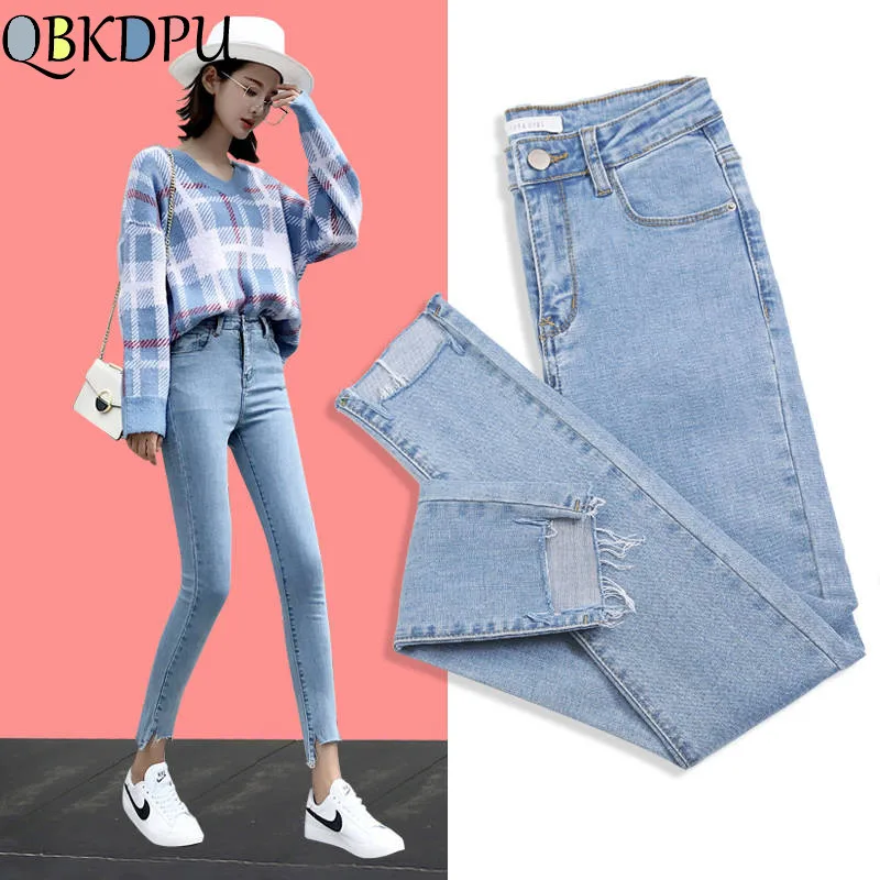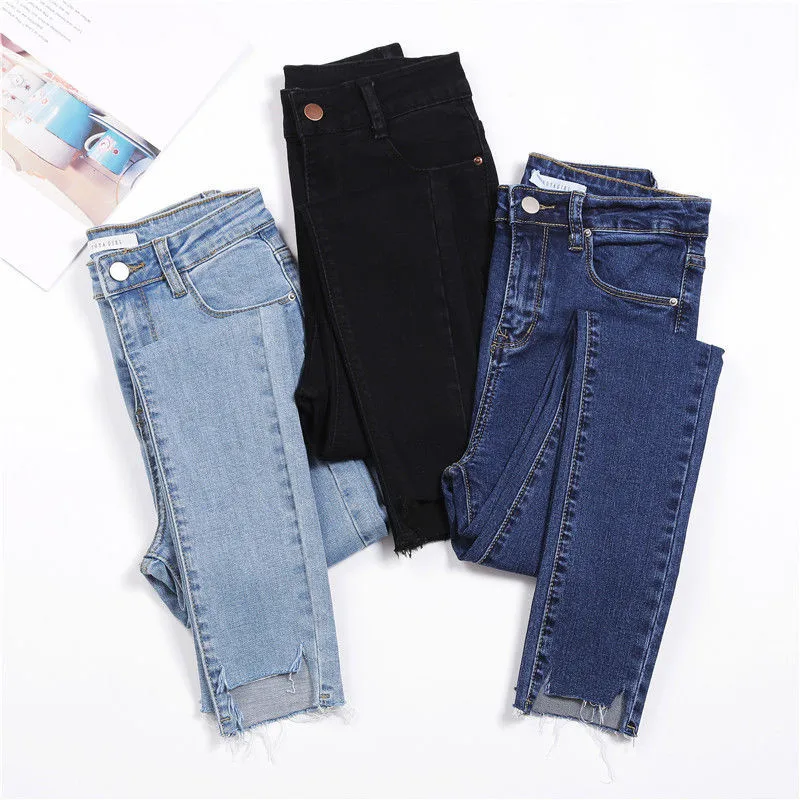 Джинсы женские черные, Стрейчевые брюки скинни с бахромой, повседневные уличные штаны