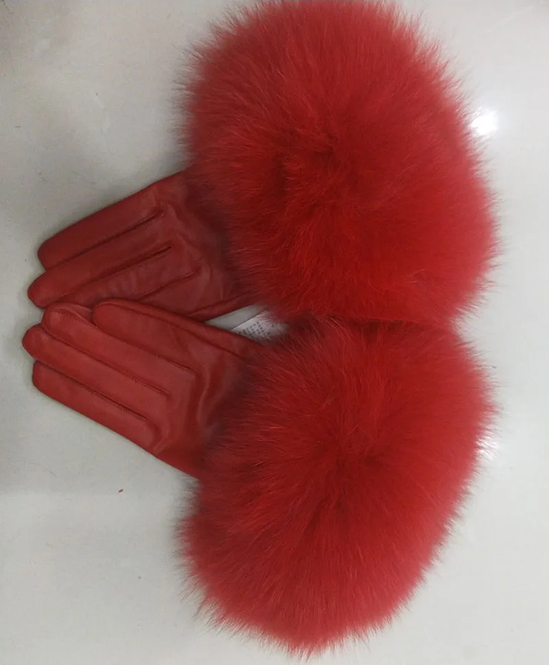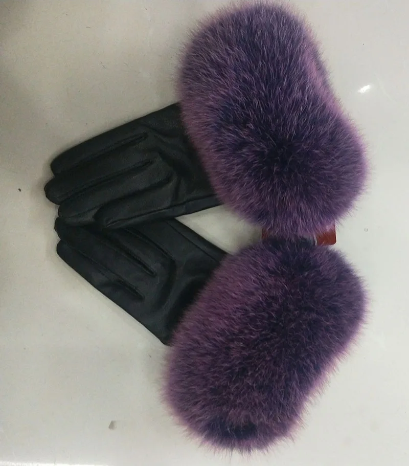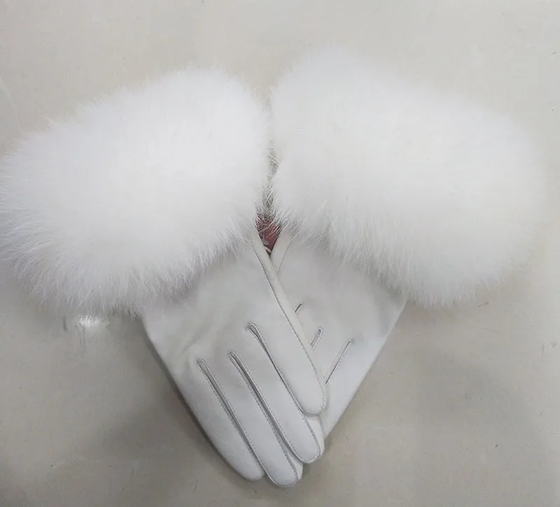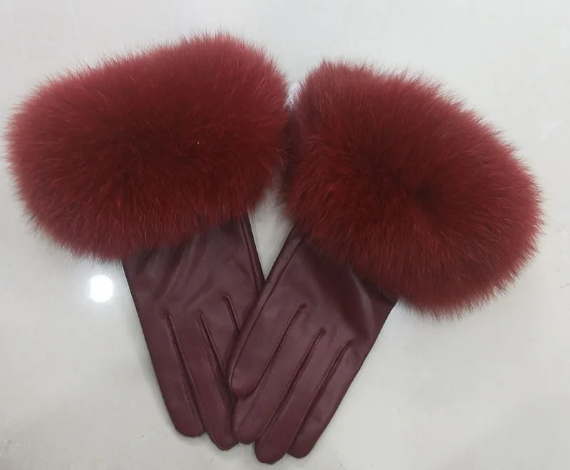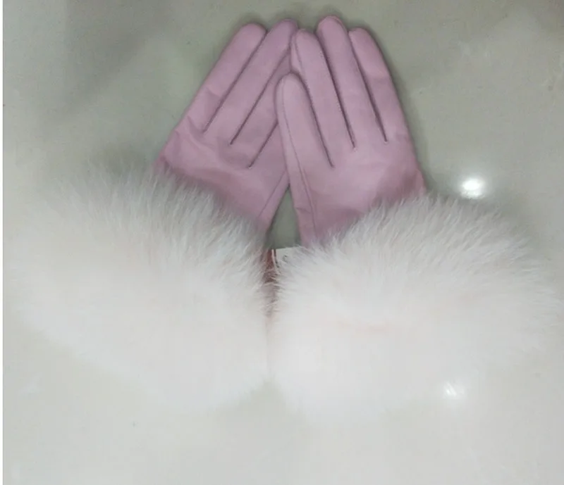 Перчатки женские из натуральной кожи, теплые зимние, с лисьим мехом