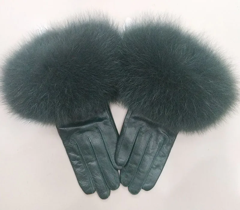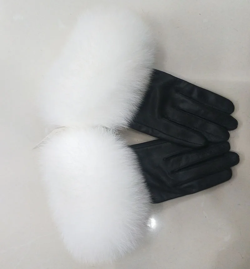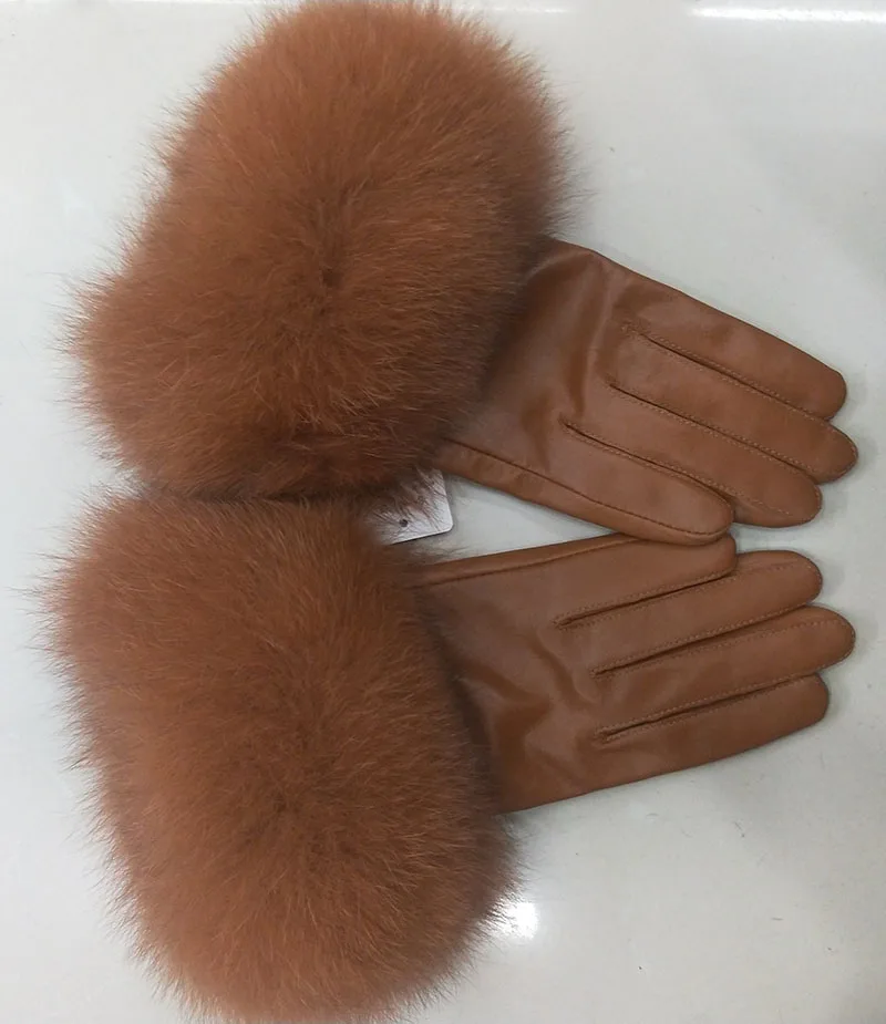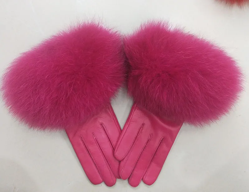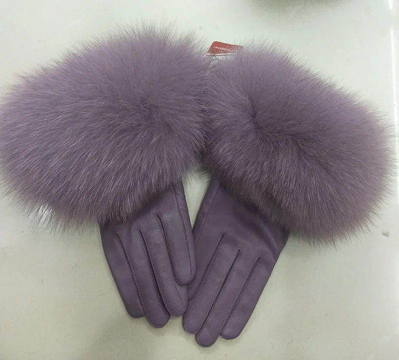 Перчатки женские из натуральной кожи, теплые зимние, с лисьим мехом