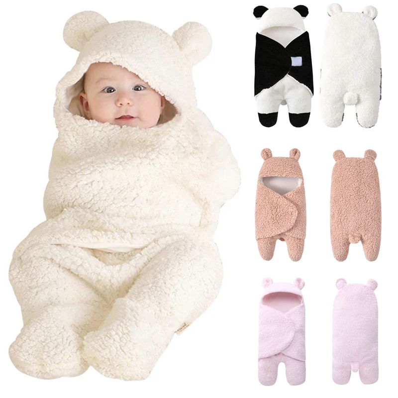 Милое детское одеяло с капюшоном и рисунком из мультфильма; Флисовая пеленка для новорожденных; Зимний теплый милый плюшевый мишка; Спальный мешок для малышей с ушками