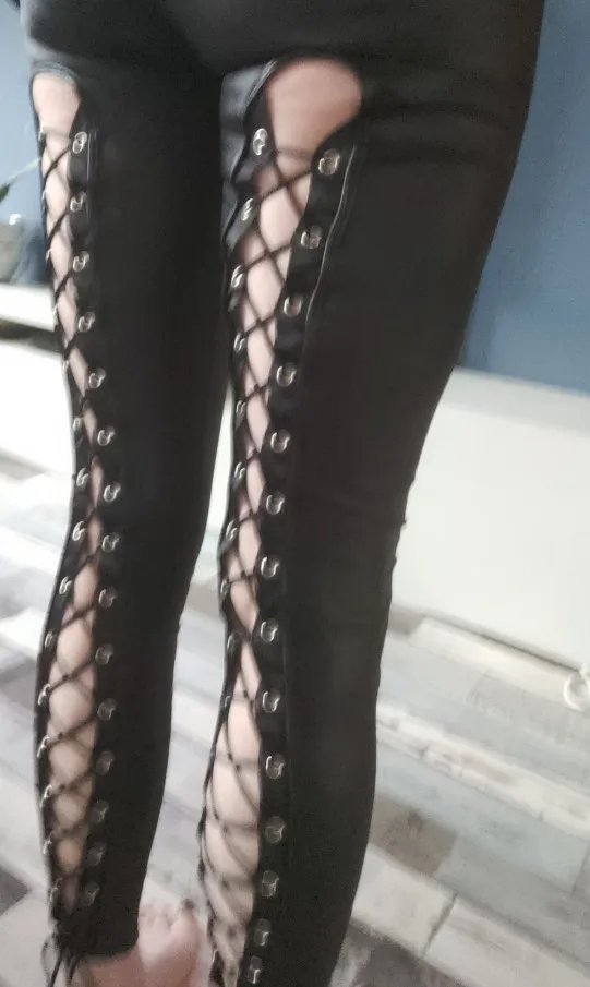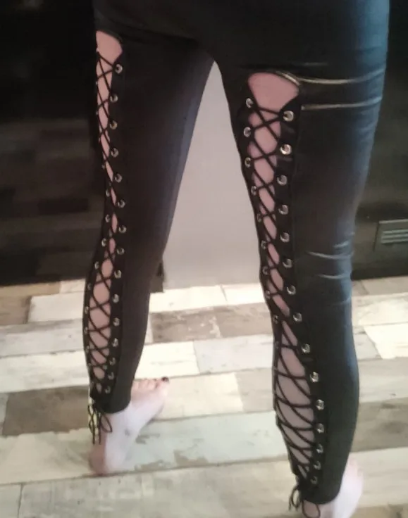 Новинка, леггинсы в стиле панк, женские сексуальные кружевные черные леггинсы из искусственной кожи в готическом стиле, Клубная одежда, латексные леггинсы FIF66