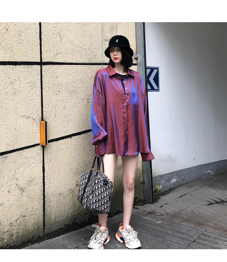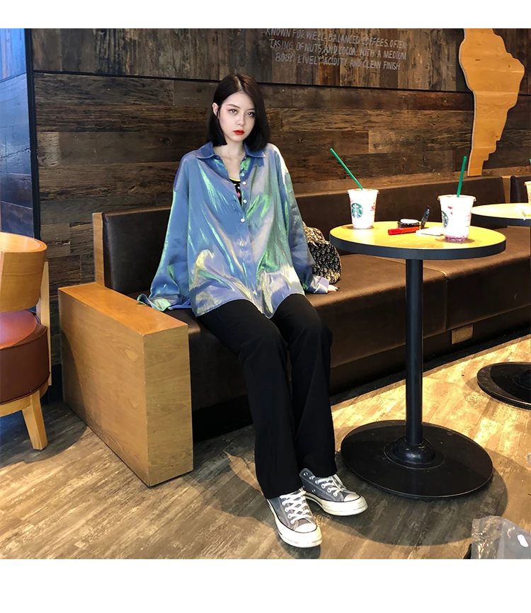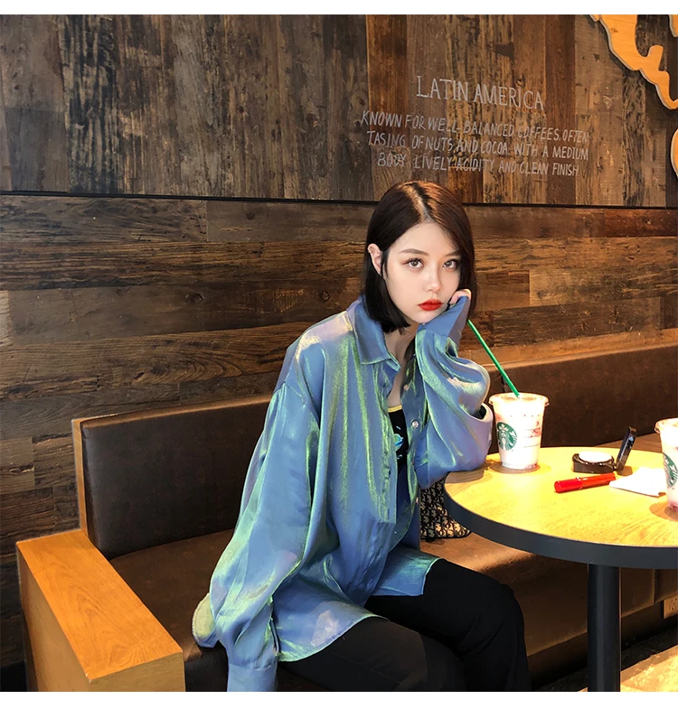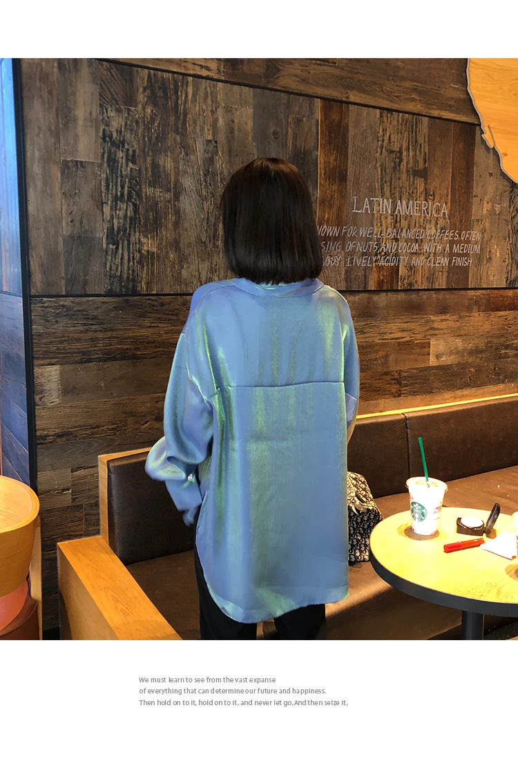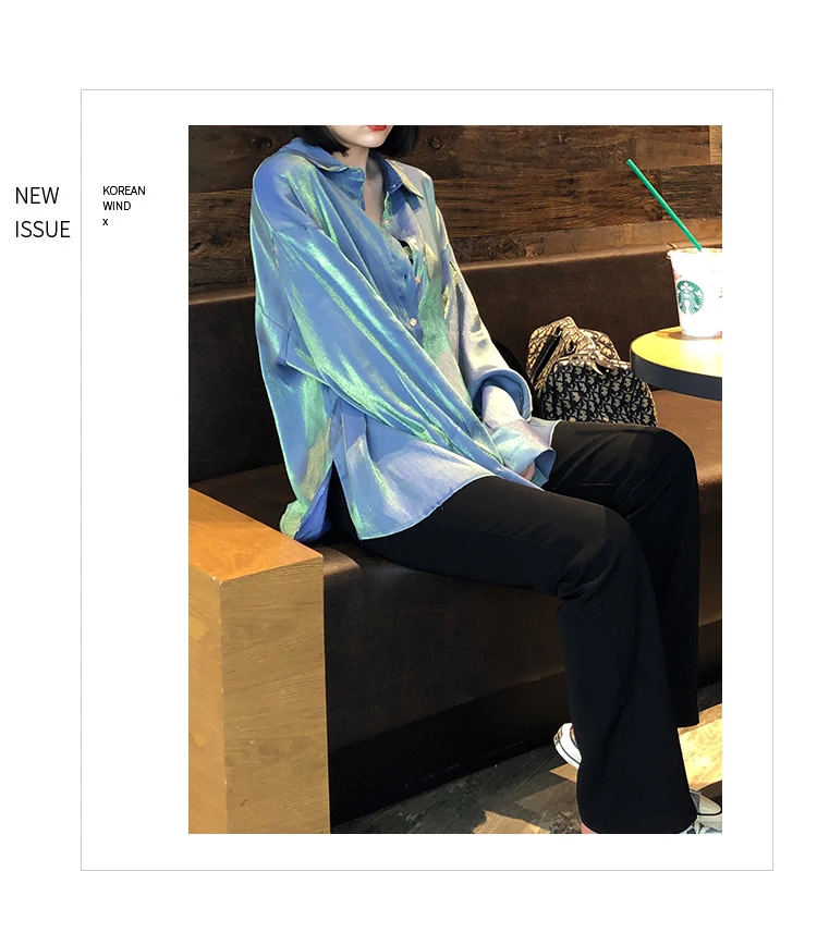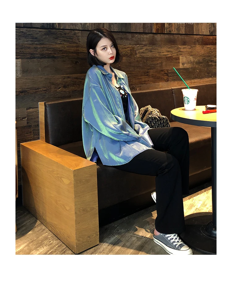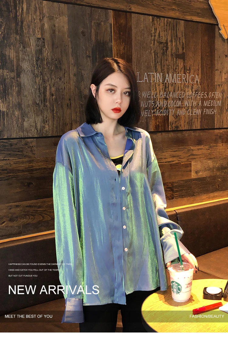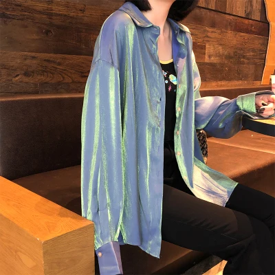 Новое поступление! Прозрачная Лазерная симфоническая Солнцезащитная яркая куртка, прозрачная куртка, Переливающаяся Глянцевая блузка-рубашка с голограммой