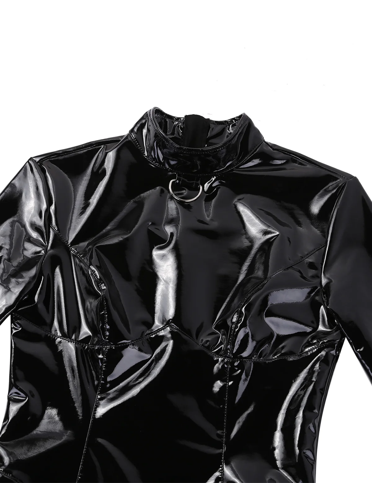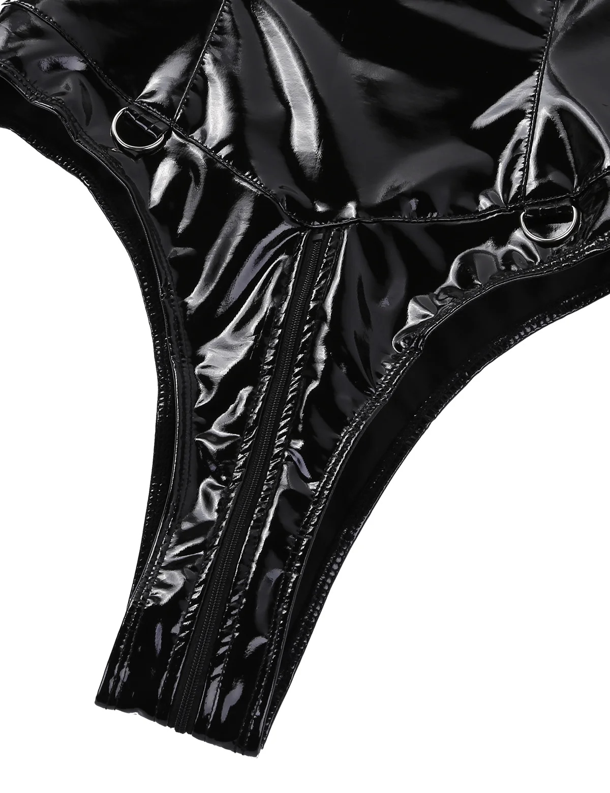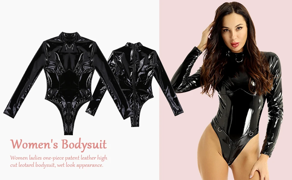 Особенности:Женский Цельный боди из лакированной кожи с высоким вырезом, внешний вид мокрый.Высокий воротник и длинные рукава, двойной конец молнии проходит от задней шеи до передней промежности для одевания и доступа.Металлические d-кольца на шее и высоком бедре для крепления. Изготовлены из легкой и гладкой ткани, мягкие и удобные в носке.Идеально подходит для романтической ночи, танцев, выступления на сцене, клубной одежды, вечерние, ночные вечера и т. д.Пожалуйста, внимательно ознакомьтесь с приведенным ниже размером перед заказом, рекомендуется ручная стирка в холодной воде.
