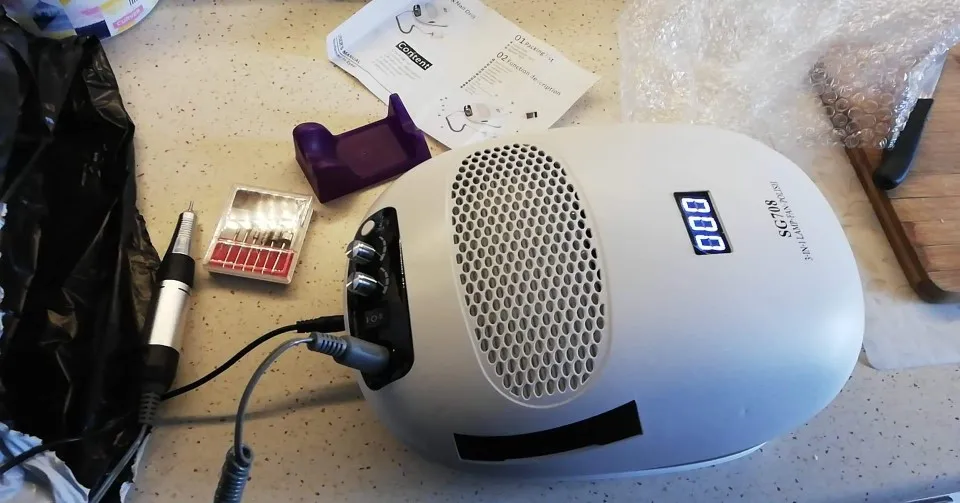 Заказ в Питере получила через 10 дней - домой привез курьер из СДЭК. Упаковка: фирменная коробка от прибора, сверху обмотанный скочем пакет. Но ни коробка, ни содержимое не повреждено. Все работает. Я в полном восторге. Сама никогда не делала себе аппаратный маникюр с гель-лаком. Посмотрела ролики и решила попробовать. Результат порадовал. Машинка очень удобная для таких чайников как. Хотя фрезы не очень, но я уже заказала другие (как у моего мастера). Фрезер (или как его там) не греется, фрезы стоят ровно, их не бьет. Пылесос достаточно сильный, чтобы всасывать спиленные частички гель-лака. С лампой не поняла. Кажется у нее два режима. Один включается при всунутой внутрь руке, и начинается отчет времени. Таймера нет, нужно следить за временем. Кстати, и руку от дна лампы поднимать нельзя - лампа погаснет. Второй режим, похоже, с нарастанием мощности, но лампа после вынимании руки не отключается, а отчет времени продолжается. Еще не разобралась. Рекомендую!!! Продавцу спасибо!