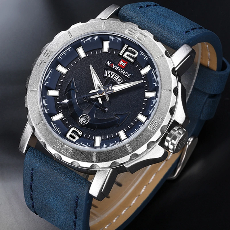 Часы наручные NAVIFORCE Мужские кварцевые, роскошные модные повседневные водонепроницаемые, с кожаным ремешком, с отображением дня и даты