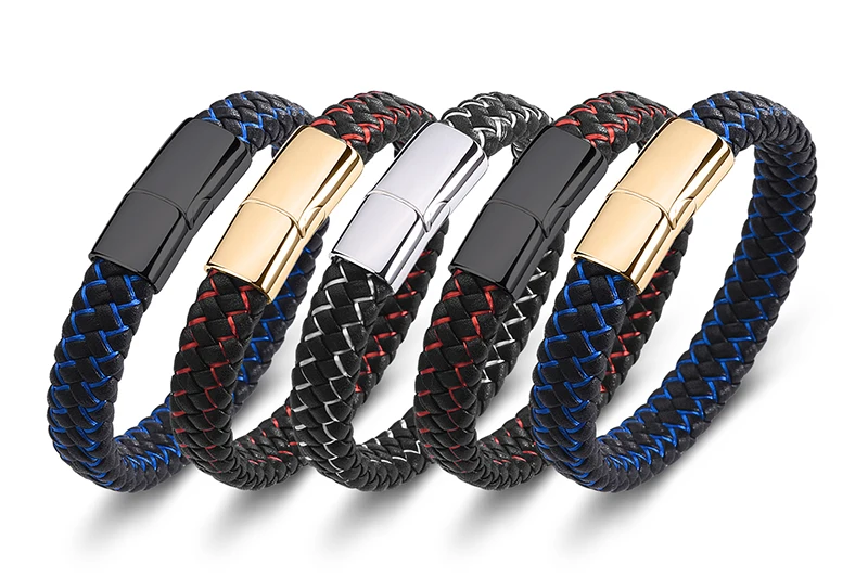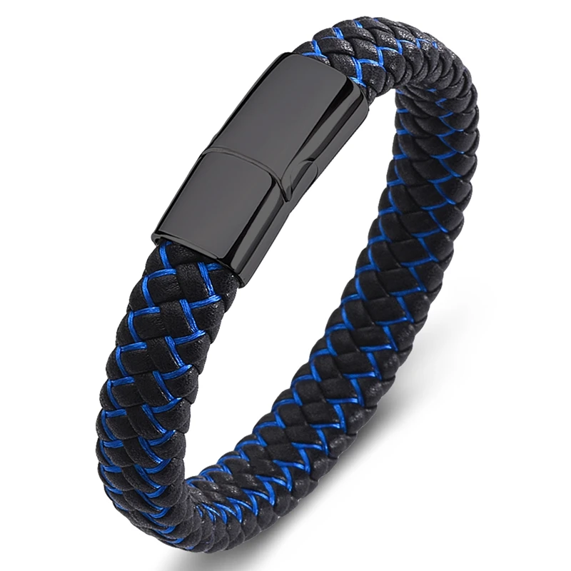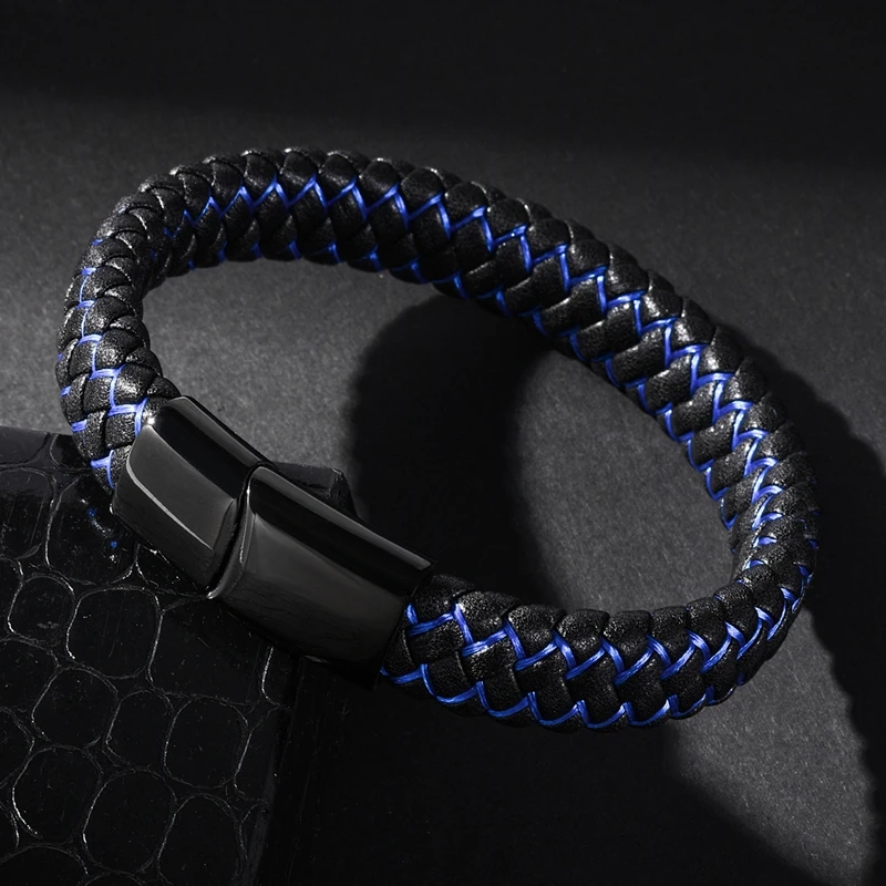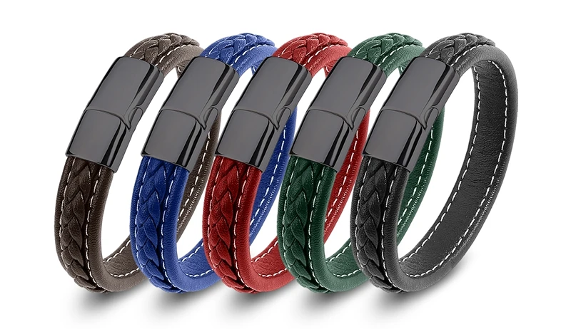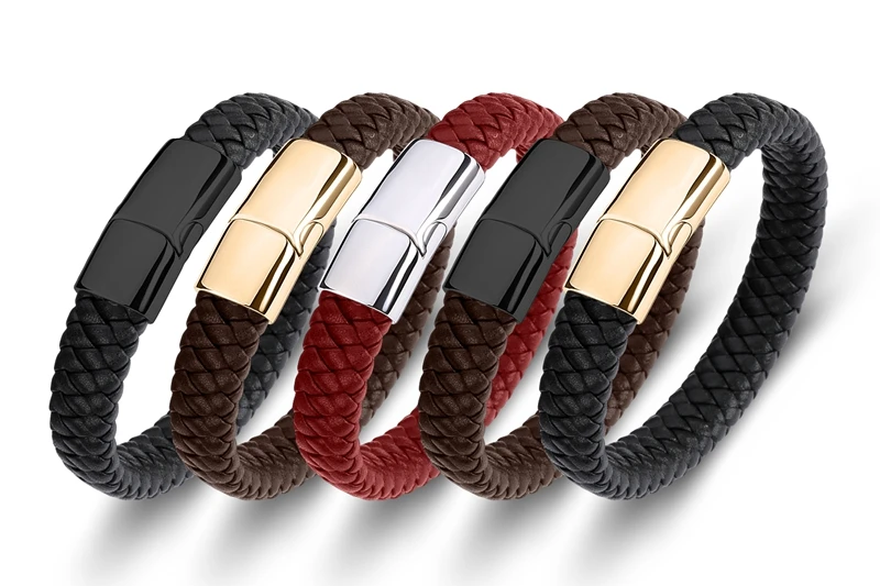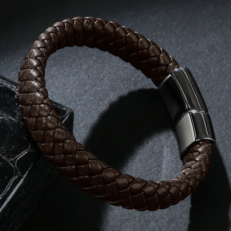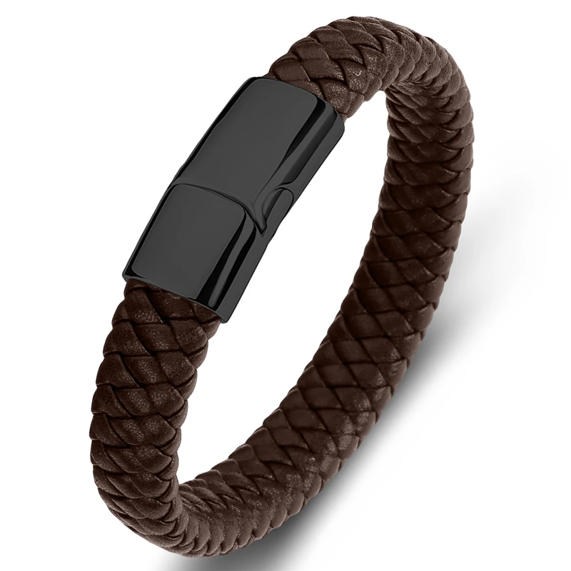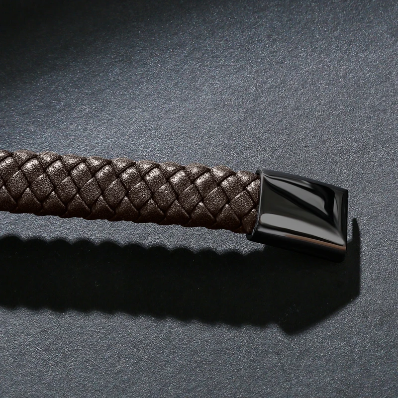 Браслет MOZO Кожаный Плетеный, мужской, женский, ручной работы, из нержавеющей стали, с застежкой, 010