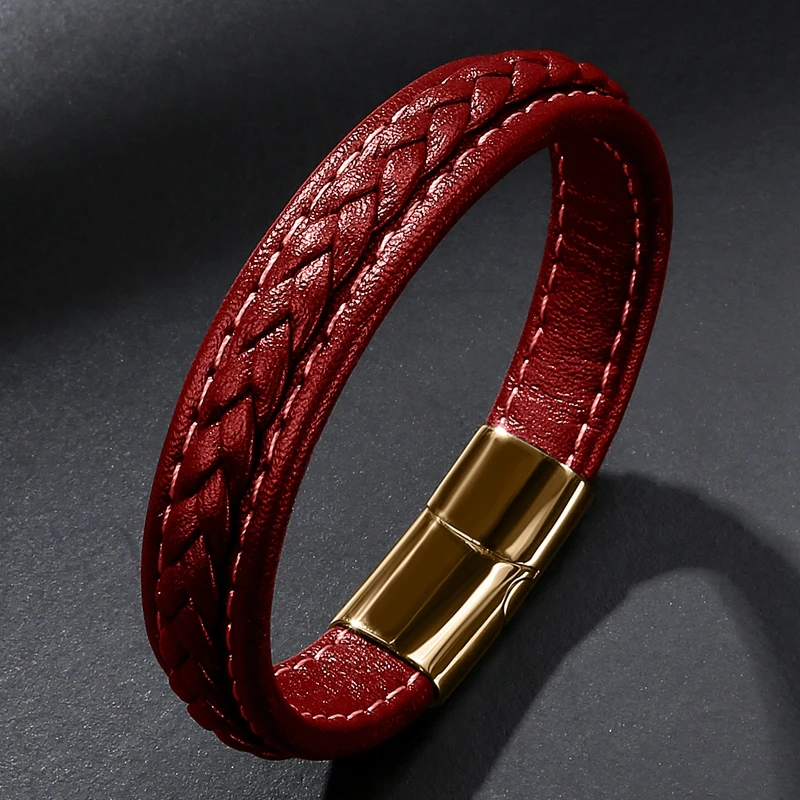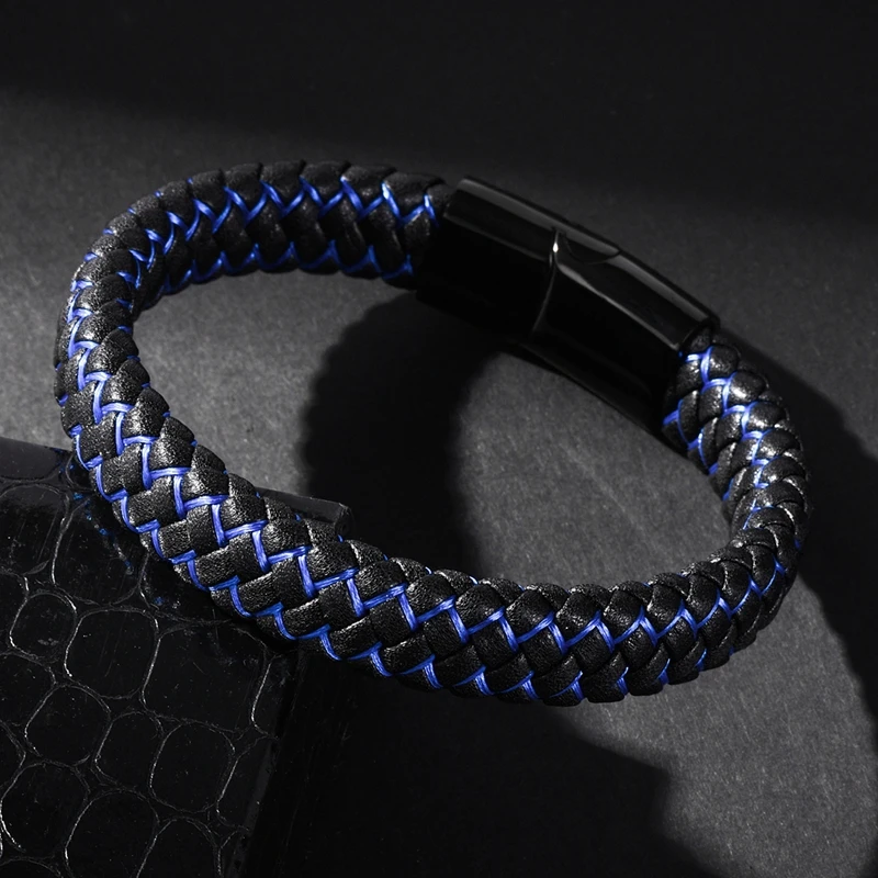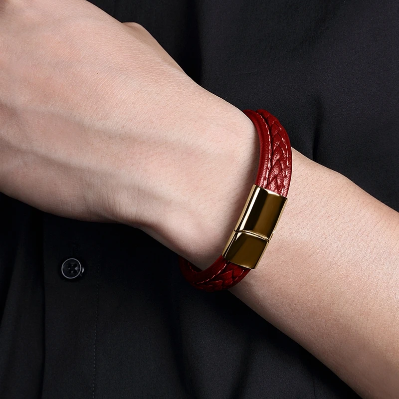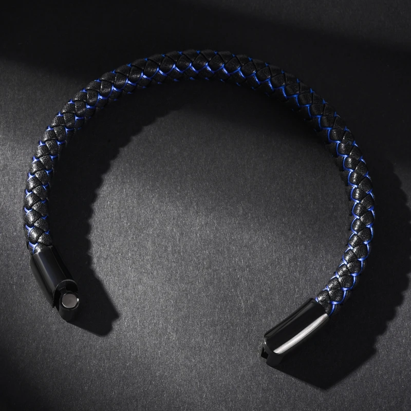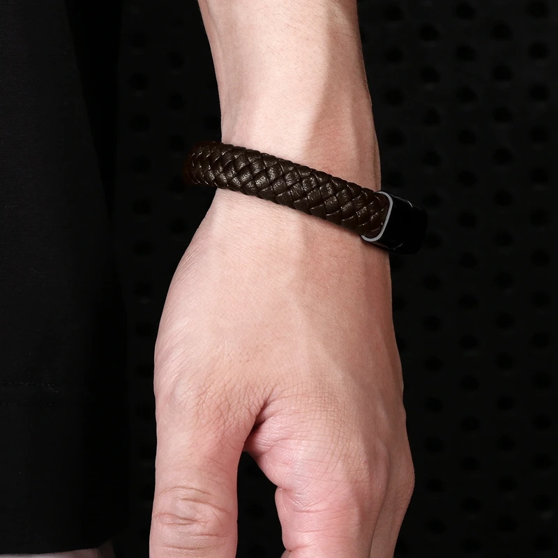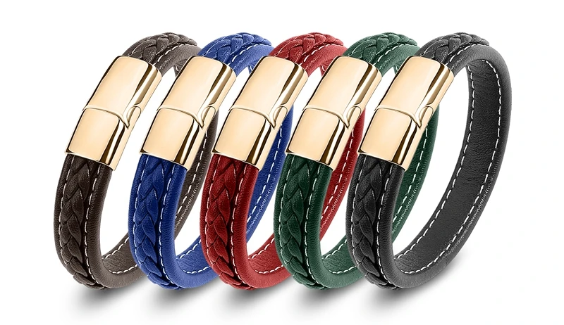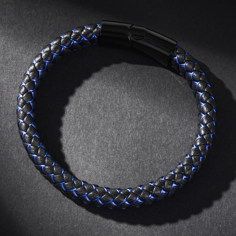 Браслет MOZO Кожаный Плетеный, мужской, женский, ручной работы, из нержавеющей стали, с застежкой, 010