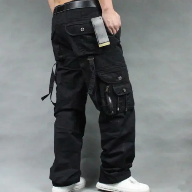 Брюки-карго мужские хлопковые, Свободные мешковатые штаны с карманами, повседневный комбинезон, прямые штаны, большие размеры 38, весна-осень