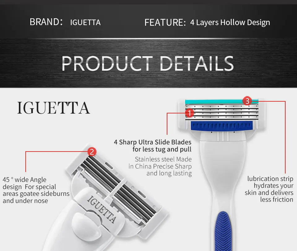 головка бритвы дешево для бритья для бритья бороды для бритья головы для мужчин женская бритва Сменные картриджи для Мужской бритвы IGUETTA, 1 ручка и 9 лезвий, острые лезвия из нержавеющей стали, со смазочной лентой