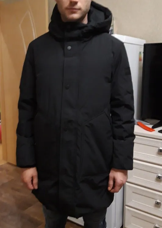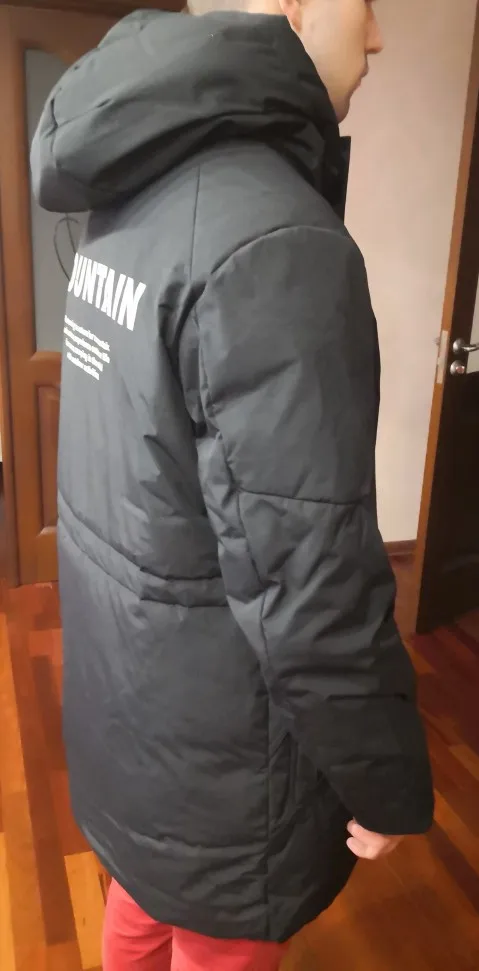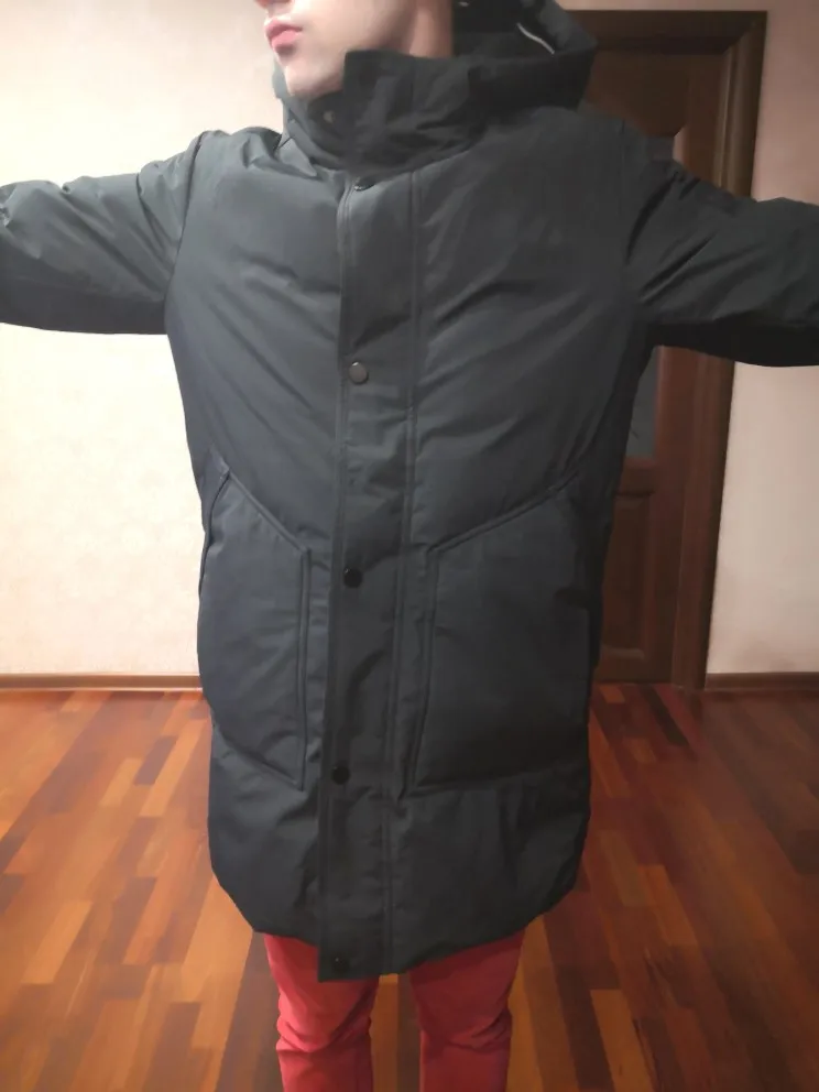 Выбирали между L и Xl на 102-85-102. Сыну нравится как сел пуховик, мне кажется, надо чуть больше. Свитер или жилет не пододеть, будет тесно. Пуховик не для зимних прогулок в средней полосе России. Максимум до минус 10 на шерстяную водолазку, чтобы дойти до метро. Застегивается на ,, молнию"и кнопки. Ткань хорошая, плотная, но не смотря на это, пуховик лёгкий. Качество исполнения очень приличное: швы ровные, нет торчащего пуха. На нашей куртке маленькие косячки: на планке застежки и на плече немного выступает, видимо, флизелин. Можно скрыть с помощью нитки и иголки. Я ничего не заказывала до сих пор на Али, приятно удивлена. За 5800 в Москве можно купить подобный пуховик. Скорее, качество будет похуже.) От дня заказа до до даты доставки - около 2х недель.
