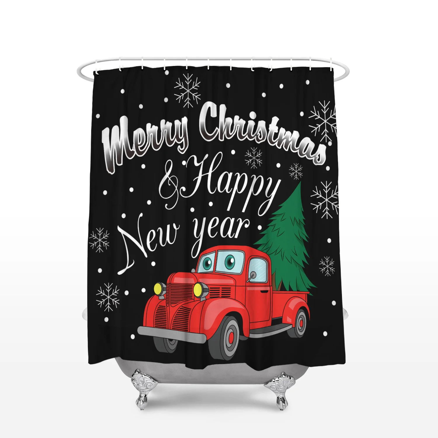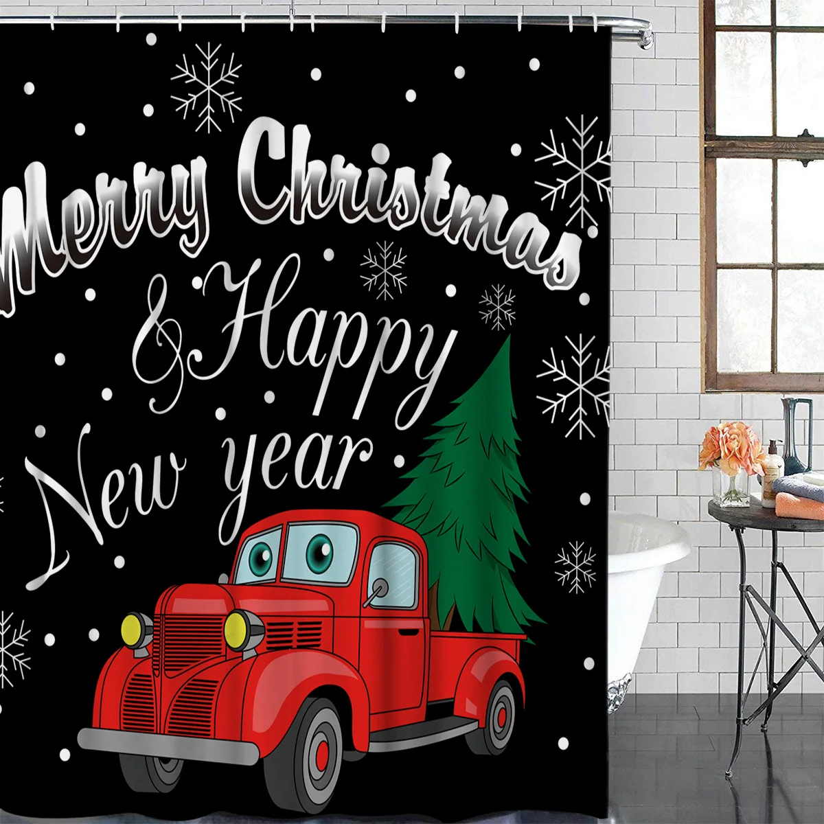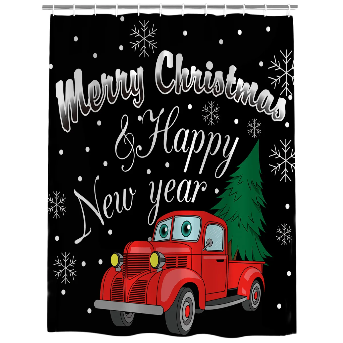 Рождественская тема Рождество пикап грузовик узор ванная комната душевая занавеска декор с крючками водонепроницаемый