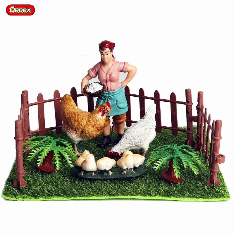 Характеристика:Oenux имитация фермы животные Свинья овечья лошадь Корова Кролик Фигурка Птица Животное ферма дом Миниатюрная модель игрушка детский подарок