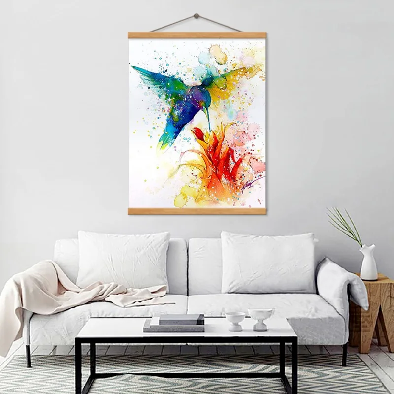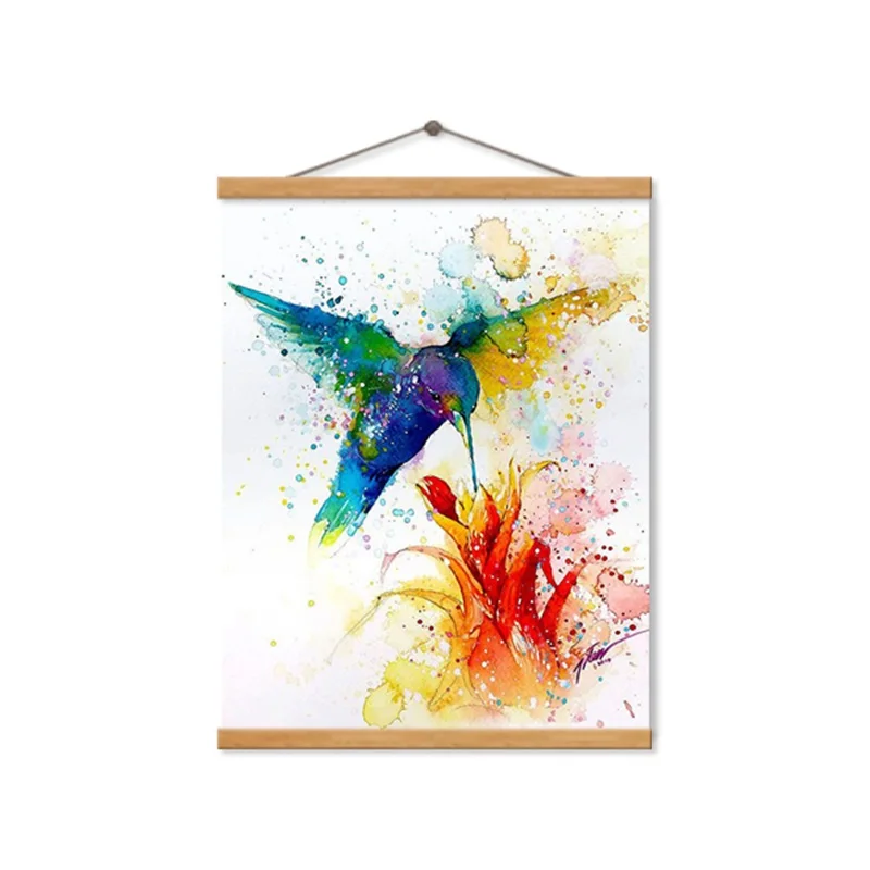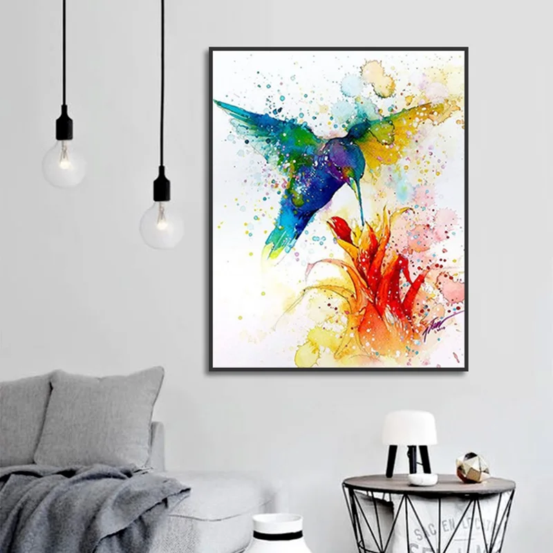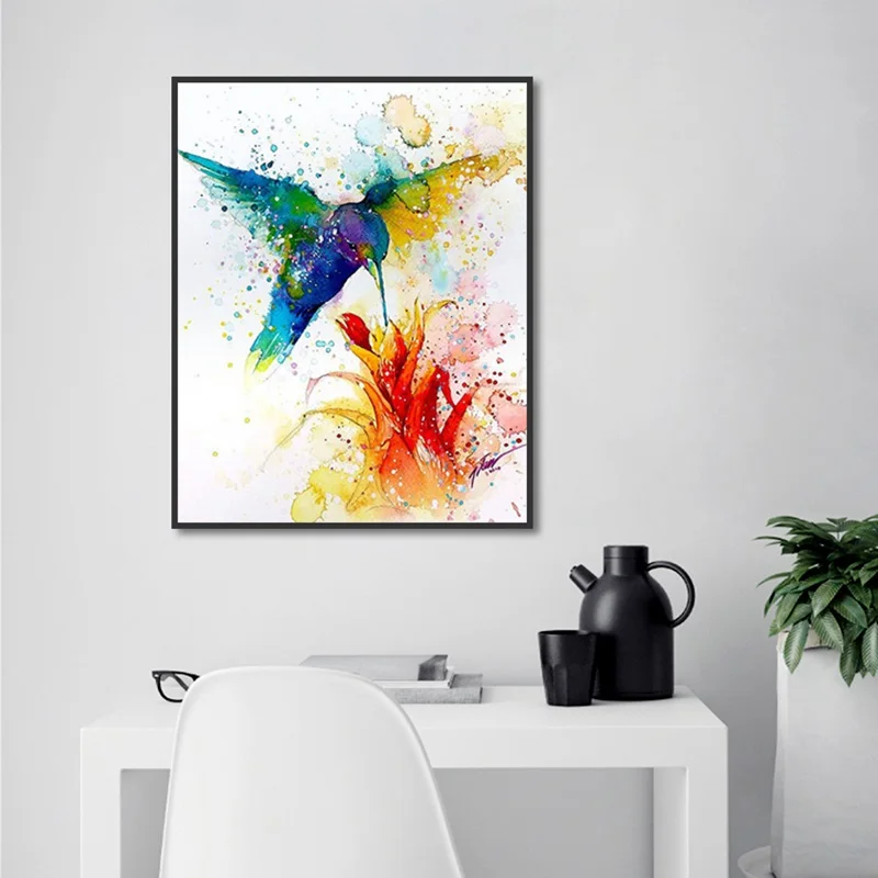 Плакат животных, птиц, колибри, собирание цветов, Художественная печать на холсте, красочная живопись, искусство, картина для коридора, Современное украшение на заказ