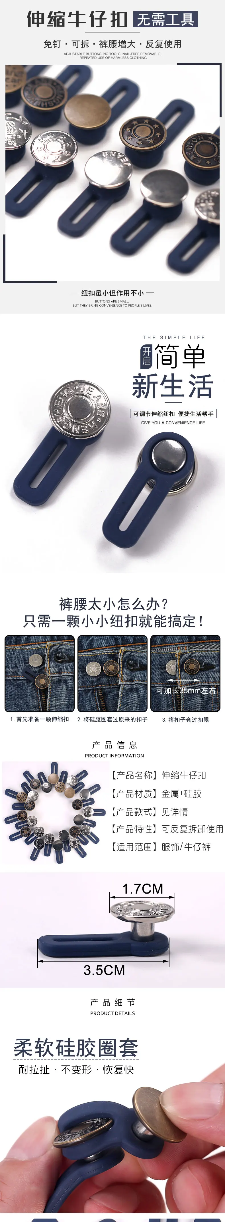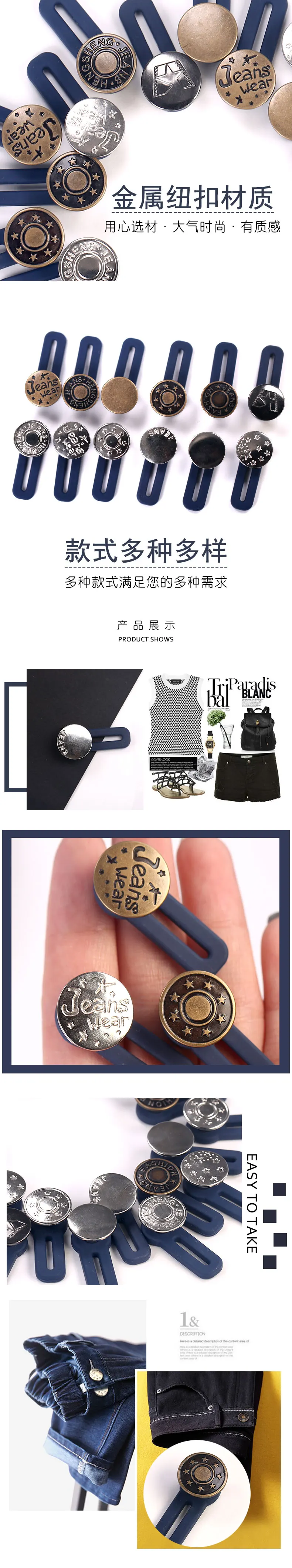 Бесплатная швейная пуговица Регулируемая разборка Выдвижная джинсовая кнопка для талии металлическая удлиненная Пряжка штаны Пояс расширитель 5 шт.