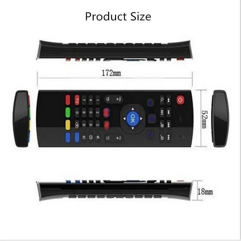 -Мышь управляется движением рук. Поддержка соматосенсорных игр -Улучшаемые функции датчика движения -Радиочастотная беспроводная технология 2,4 ГГц, высокая пропускная способность, высокая стабильность. Дистанционное управление на расстоянии до 10 м (33 фута) -ИК-управление + ИК-функция обучения: Кнопка питания и 4 цветные кнопки поддерживают функцию ИК-обучения, другие кнопки не поддерживают функцию ИК-обучения -Включение/выключение курсора мыши. Низкое энергопотребление -Совместимость с Plug & Play, USB-приемник -Товар: вес: 98 г -Размер изделия: 173*53*18 мм