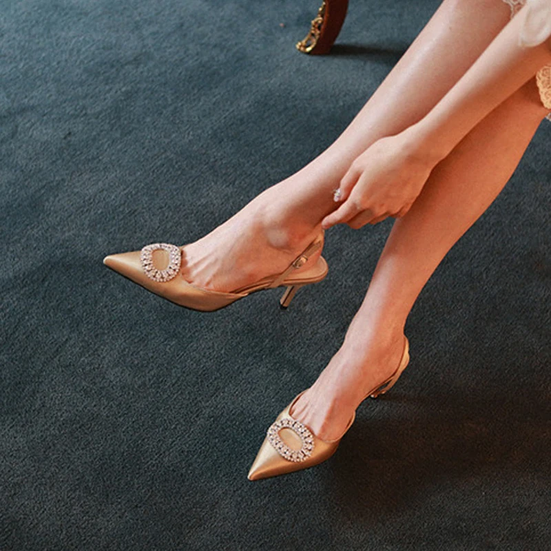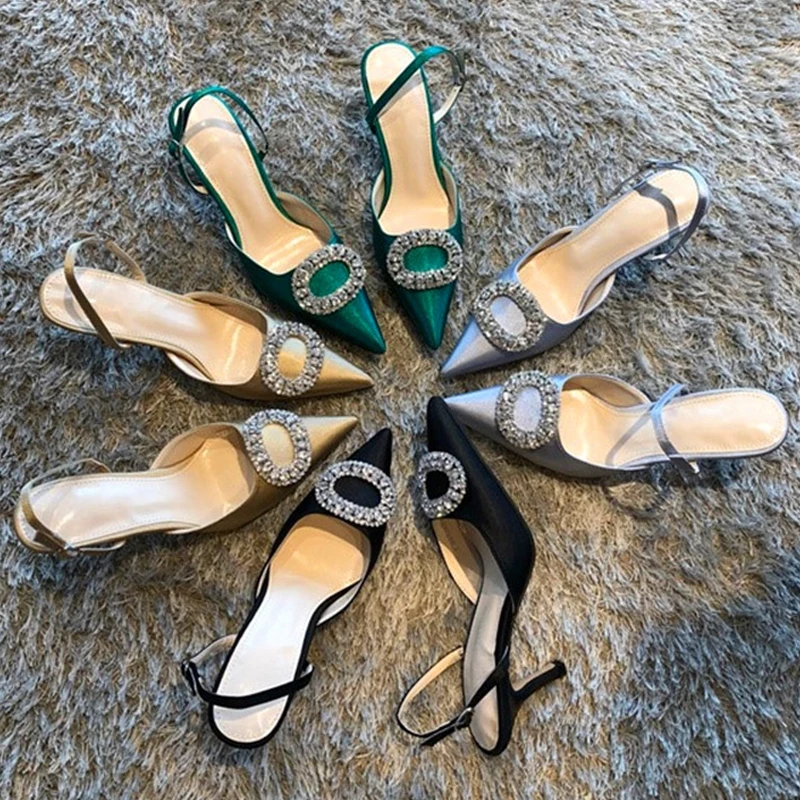 Женские туфли-лодочки на высоком каблуке, модные, с металлической декоративной пряжкой, женские свадебные туфли со стразами, платье, новинка 2021, туфли-лодочки, обувь для вечеринки