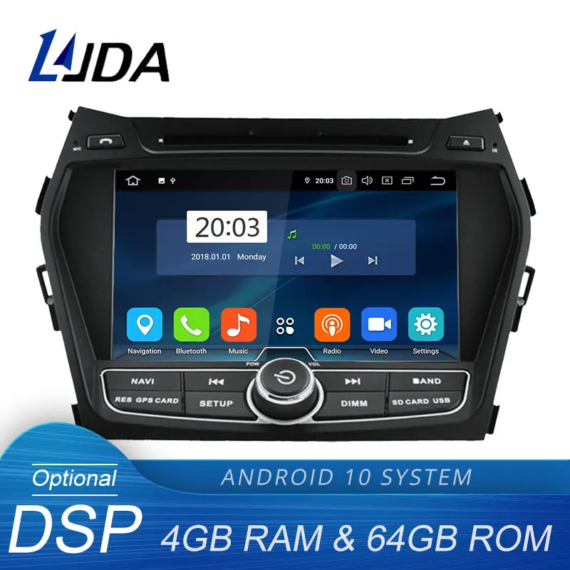 Автомобильный DVD-плеер LJDA Android 10,0 для Hyundai IX45 SANTA FE 2012 2013 2014 GPS Navi Stereo 2 Din автомобильный радиоприемник 4G + 64G Мультимедийный DSP