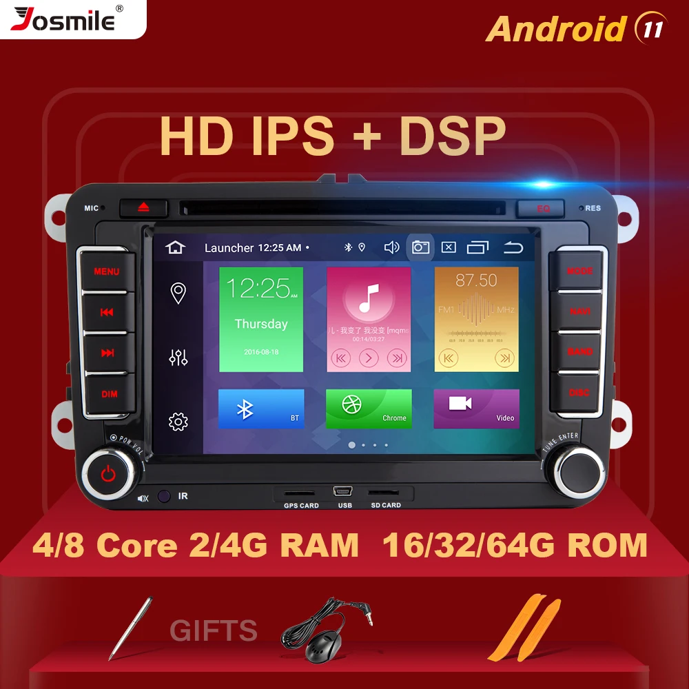 2 Din Android 11 автомобильный DVD-проигрыватель для VW Volkswagen ...