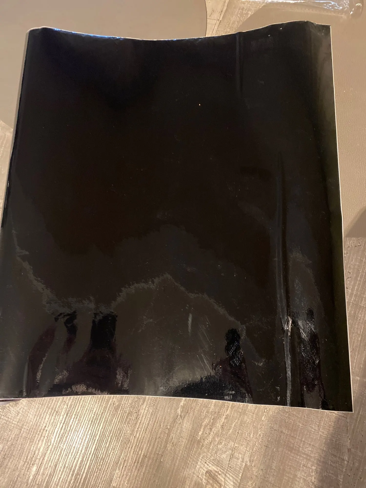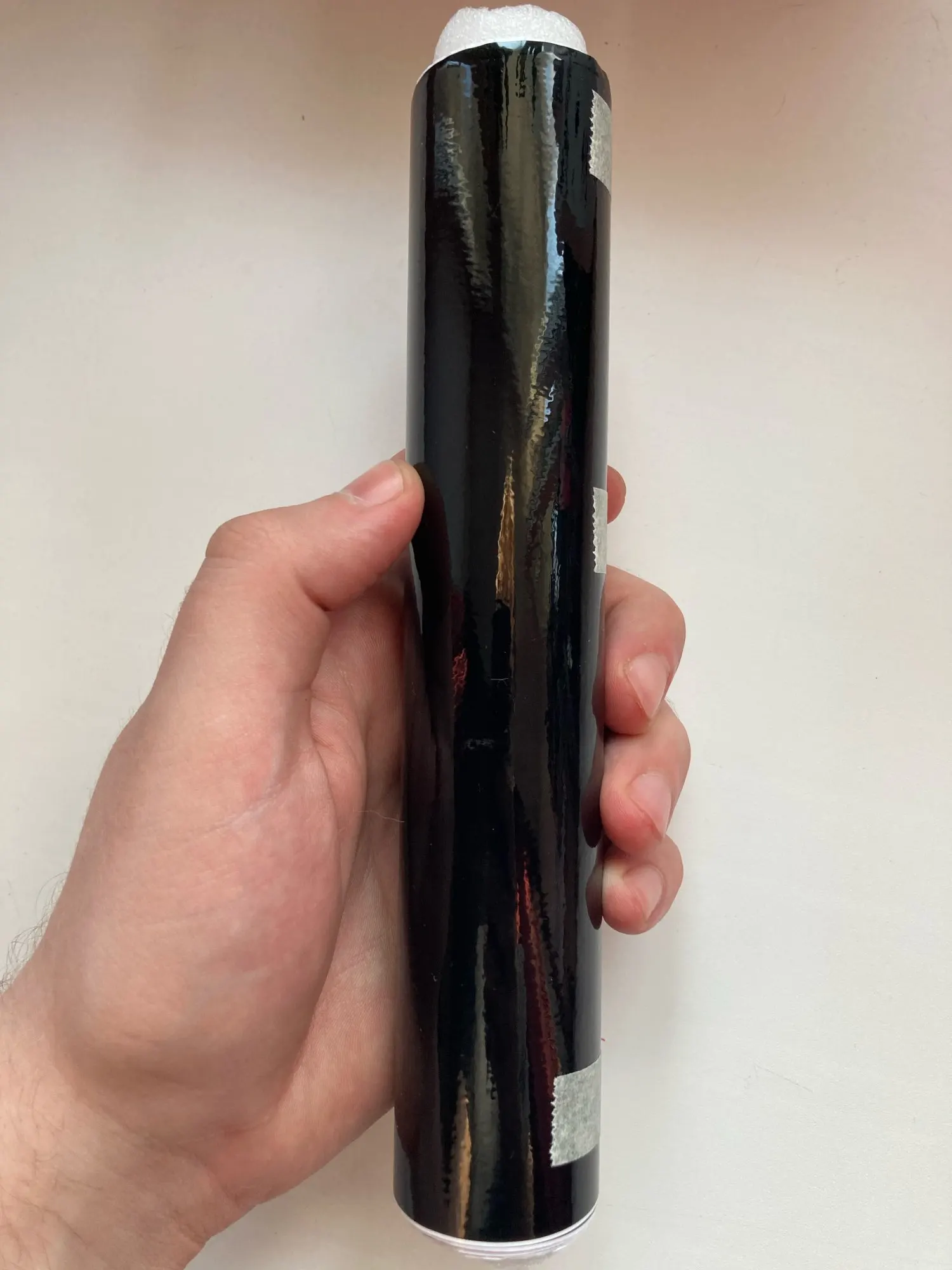 Бумагу получил мне понравилась блестящая, напоминает полиэфирное покрытие рояля. Можно делать недорогие ремонты мелких частей рояля, для крупных, как корпус не подойдёт потому что бумага узкая. Для ремонта могу посоветовать снять феном облупившийся местами полиэфирный лак, покрыть поверхность грунтом, отшлифовать очень тщательно. а затем наклеить это покрытие тщательно выдавливая пузыри. Да, ещё посылка дошла очень быстро до Эстонии.