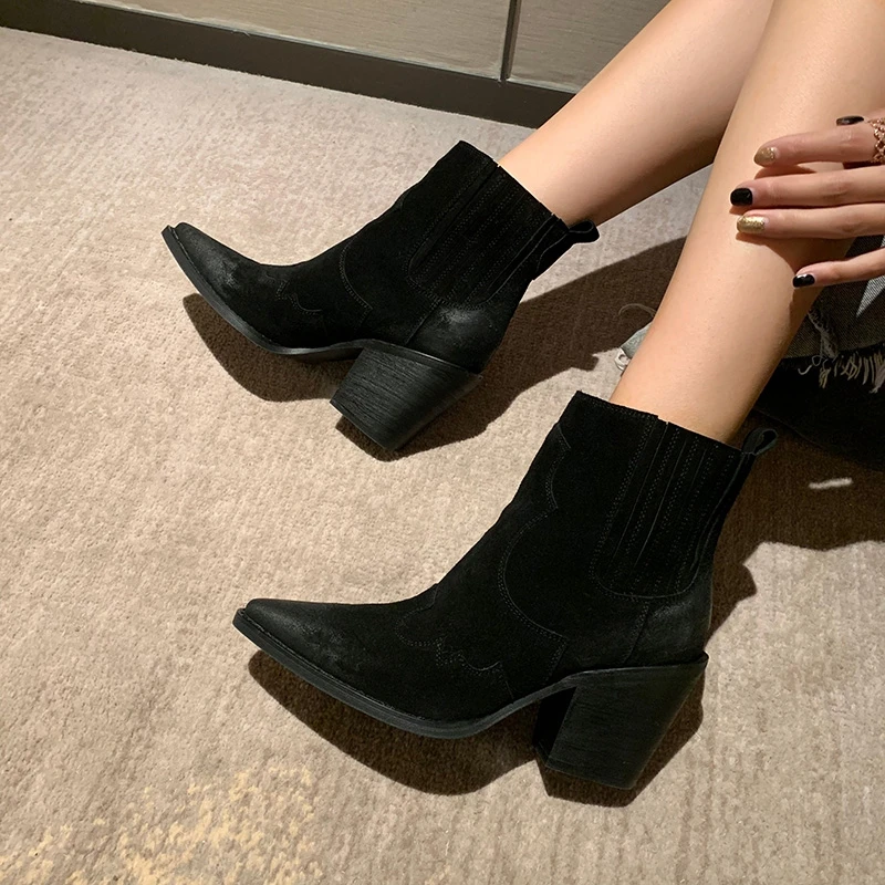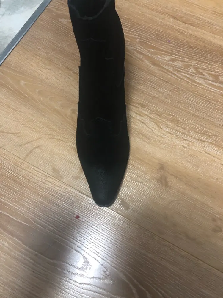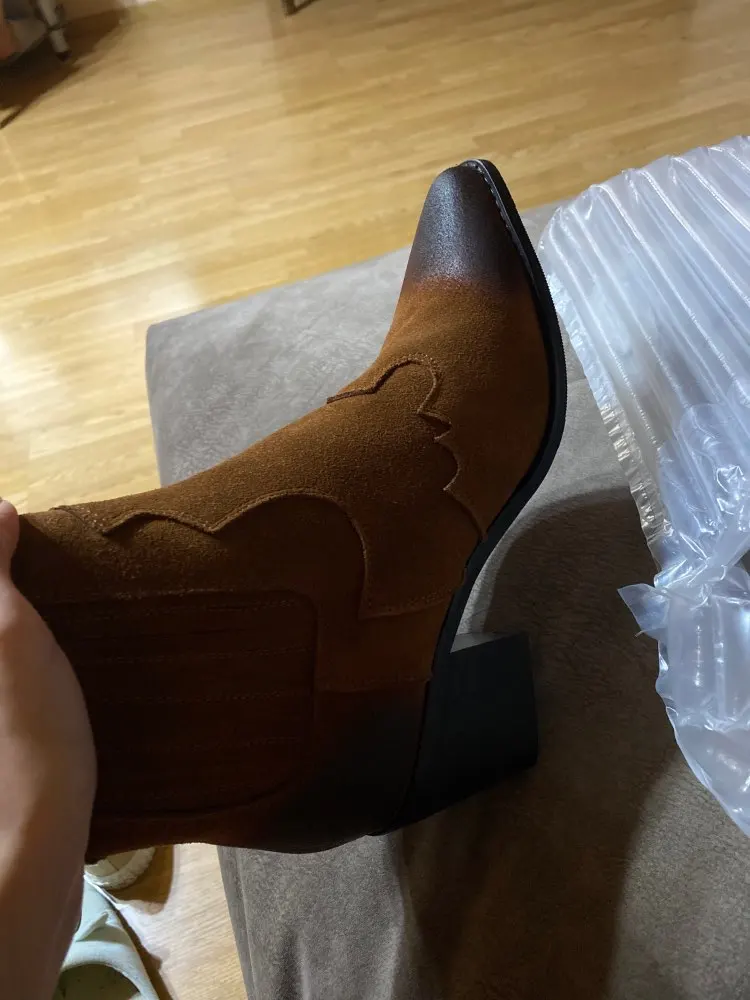 Хороший ботинок, но он suedine и не кожа, как указано в описании: Специальное предложение; Ковбойские ботильоны из натуральной замши; Женские полусапожки с острым носком на каблуке «рюмочка»; Зимние женские ковбойские сапоги В рыцарском стиле