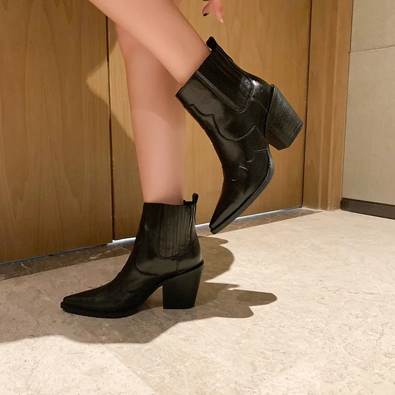 Ботильоны женские, из натуральной коровьей кожи, зимние, ковбойские, рыцарские