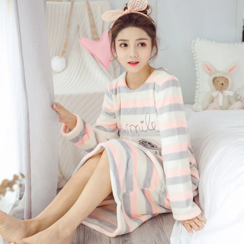 JULY'S SONG фланелевая Женская мультяшная Ночная сорочка, осенне-зимний милый халат с животными, женское толстое теплое платье, женская одежда для сна