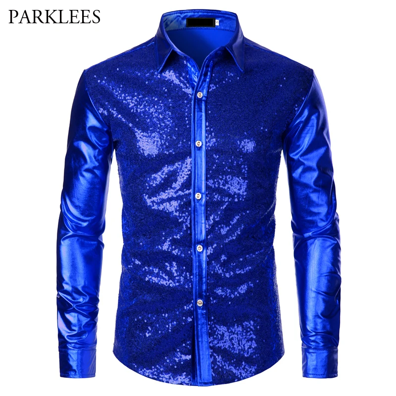 Красная металлическая блестящая рубашка для мужчин, новинка 2019, костюм для дискотеки, вечеринки, Хэллоуина, Chemise Homme, сценическая рубашка для мужчин, Camisa