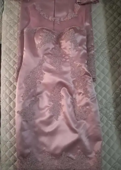 Элегантное платье-футляр для матери невесты с жакетом, атласное кру...