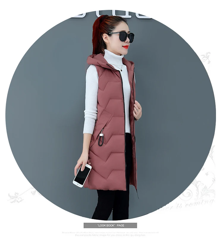 Женский Длинный жилет с капюшоном, облегающий теплый хлопковый жиле...