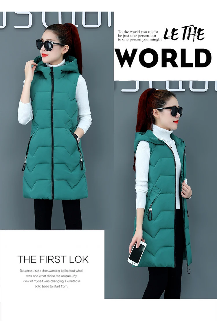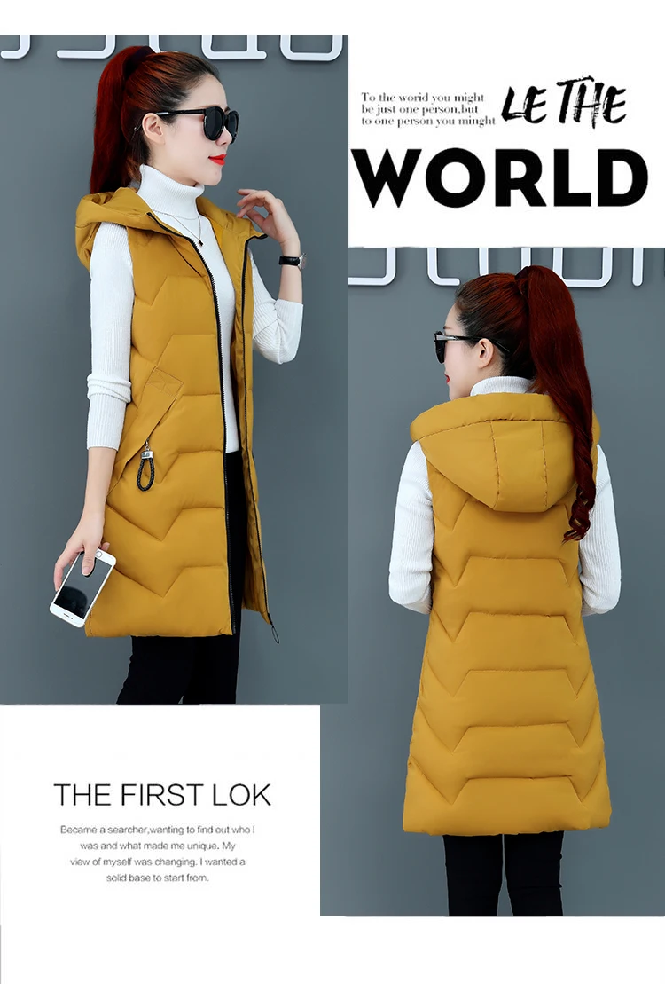 Модный новый осенне-зимний длинный хлопковый жилет, Женская куртка ...