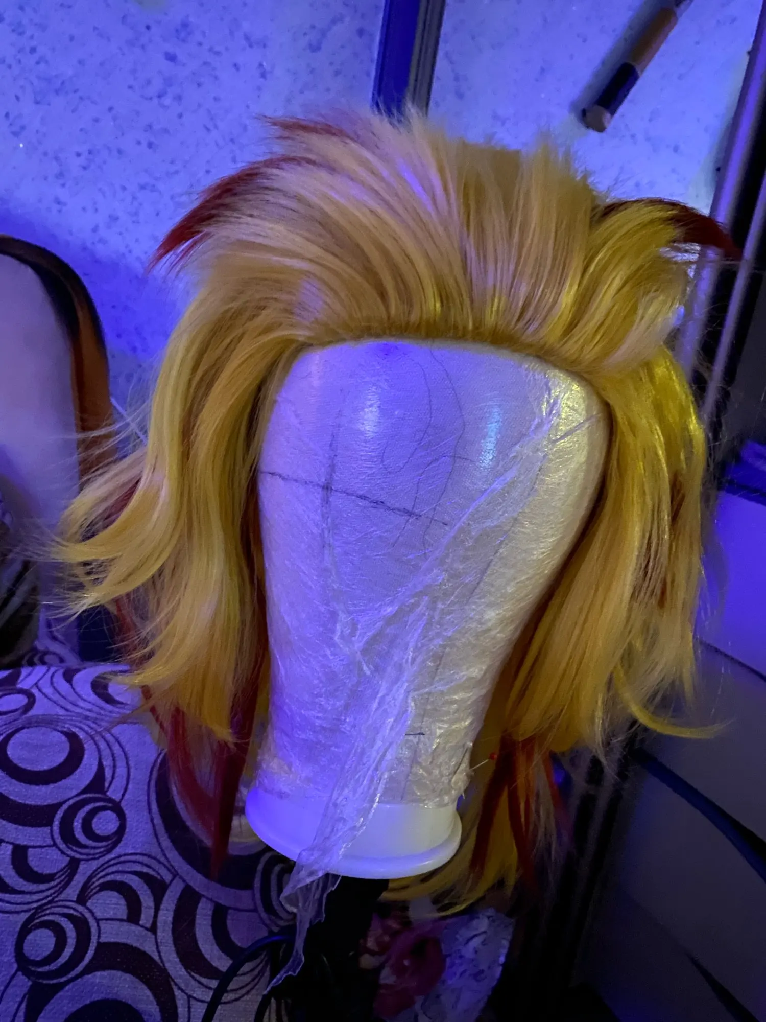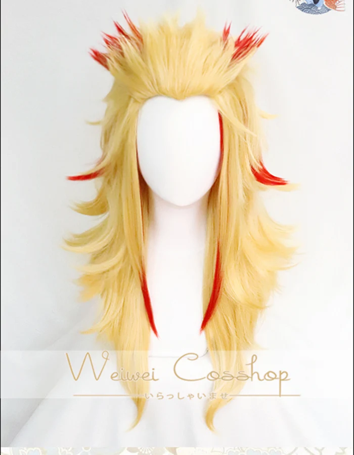 Парик Demon Slayer Kimetsu no Yaiba Rengoku Kyoujurou, костюм для косплея, термостойкие волосы для мужчин и женщин и мужчин, парики для ролевых игр + шапочка для парика