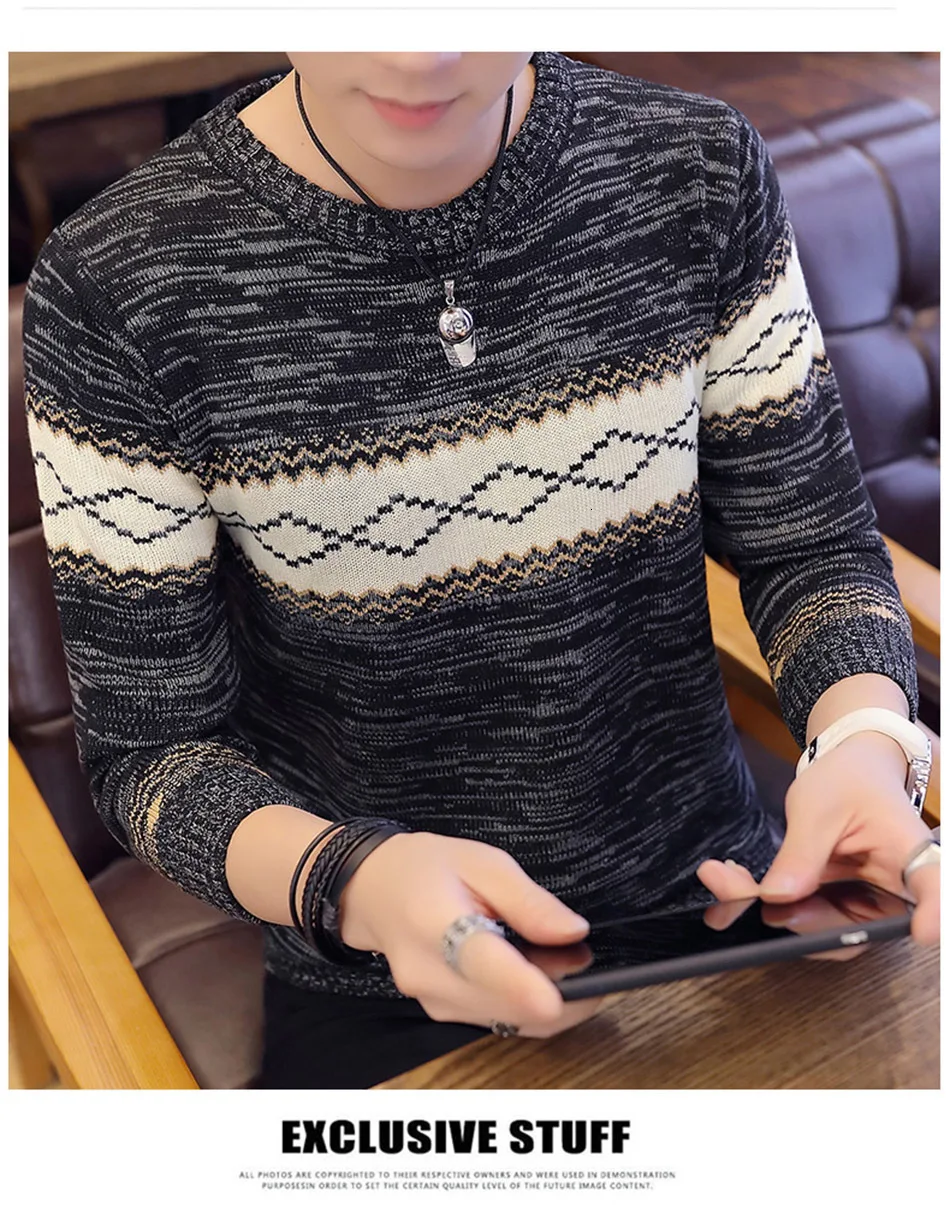Мужской трикотажный свитер с длинным рукавом, синий пуловер из полиэстера, зима 2019