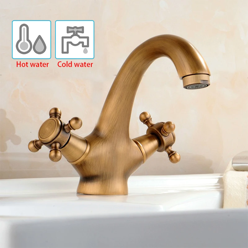 Античный латунный Смеситель для ванной комнаты с двумя ручками Drag...