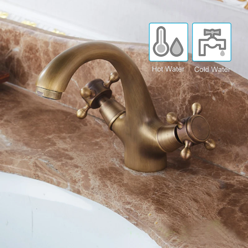 Смеситель для раковины латунный с одной ручкой и античной бронзовой...
