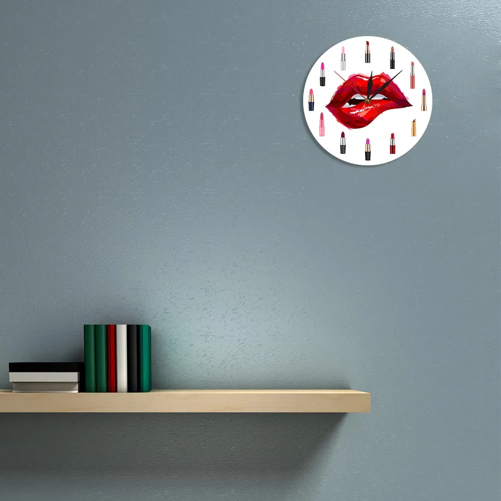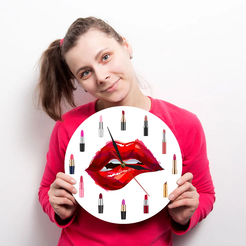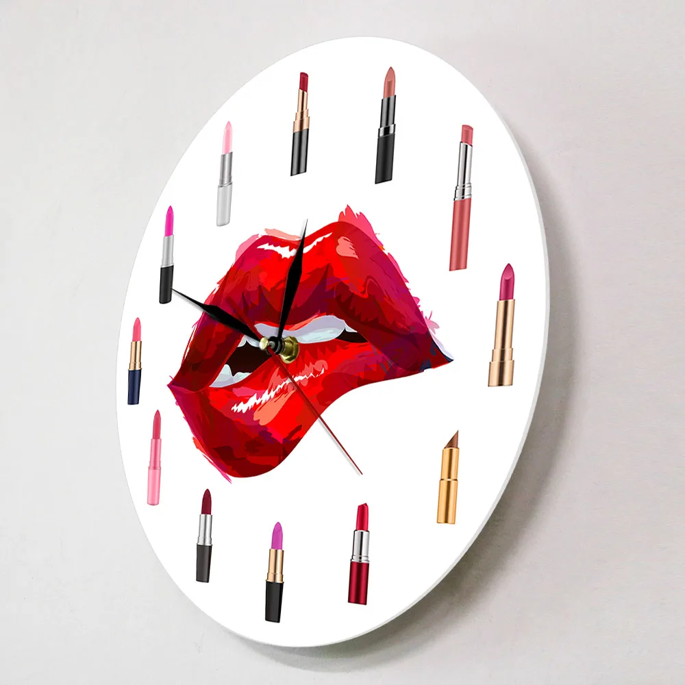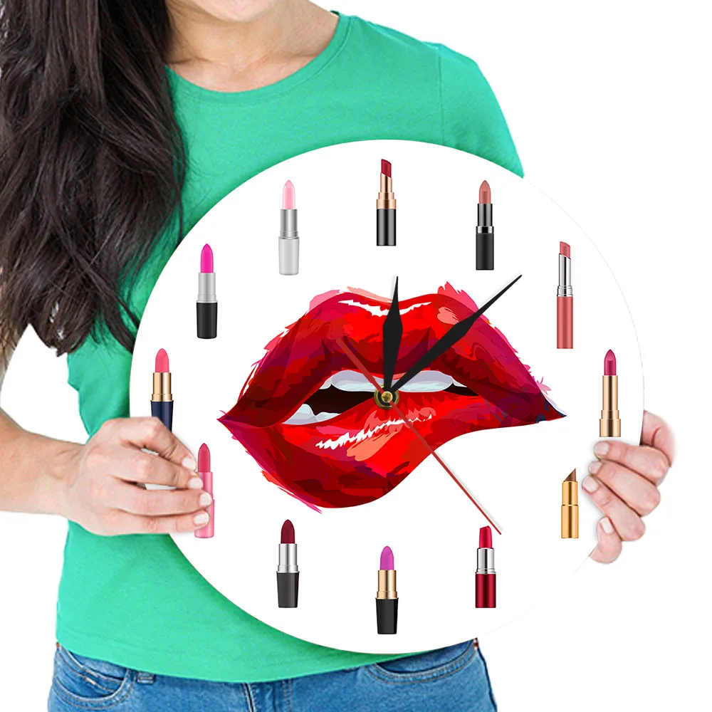 Девчачьи вещи красивые губные помады фанки настенные часы для салона красоты декоративные бесшумные настенные часы Модные стены искусства визажиста идея подарка
