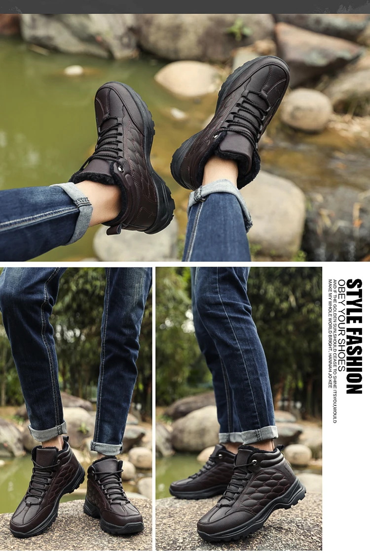 Мужские зимние ботинки с высоким берцем, теплые зимние ботинки с мехом, спортивная обувь для трекинга, кожаные уличные водонепроницаемые ботинки, кроссовки для мужчин