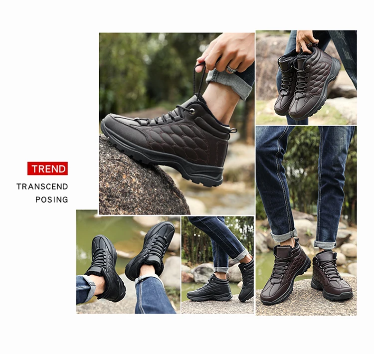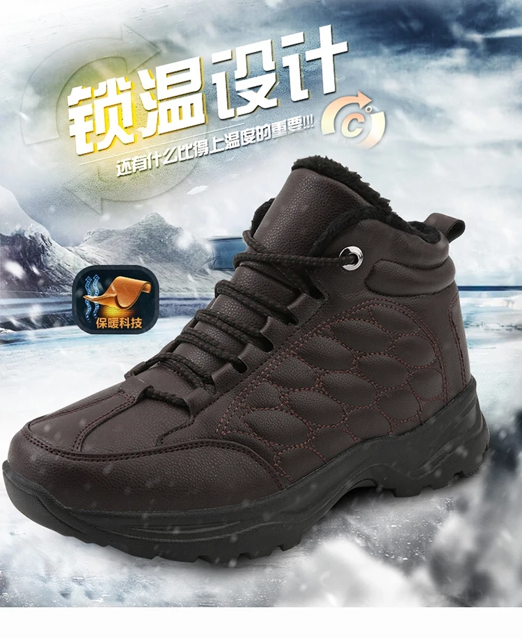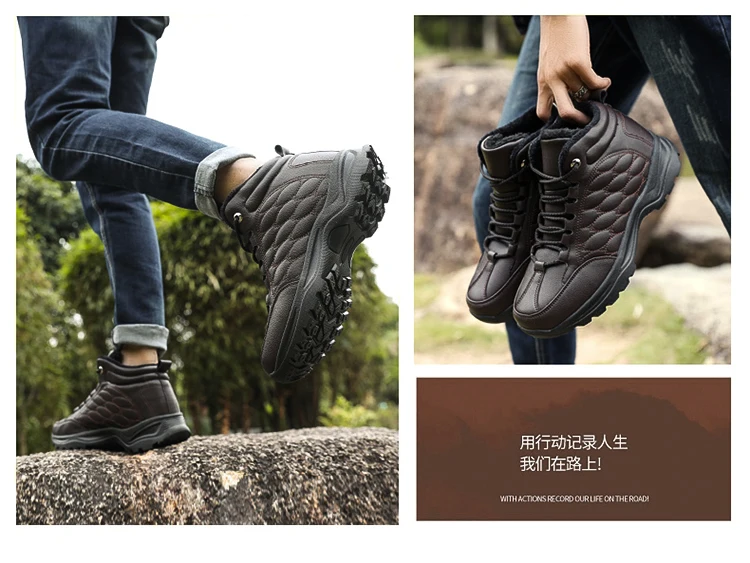 Новая зимняя обувь с высоким берцем с мехом внутри, теплые лыжные ботинки; Зимние сапоги; Мужские ботинки Спортивная беговая Обувь для прогулок из кожи с Водонепроницаемый ботинки кроссовки для мужчин Материал верха: кожа Подошва: резиновая подошва Размер: 40-45