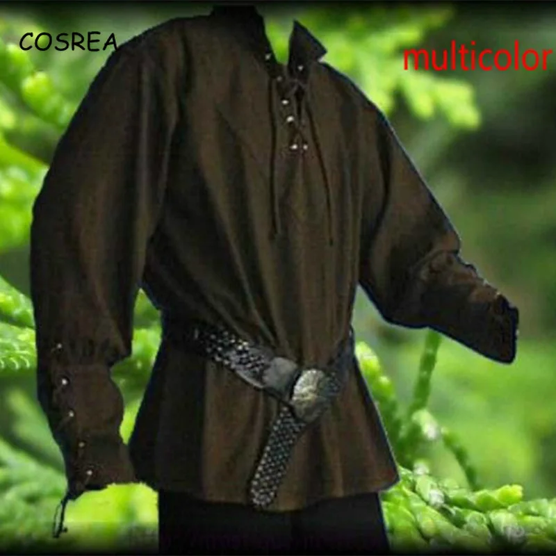 Рубашка с длинным рукавом, Средневековый Ренессанс, бандажные топы для взрослых, Мужской винтажный костюм, пушистая одежда для мужчин среднего возраста