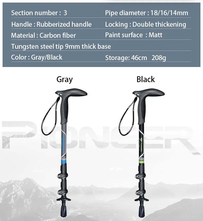 Трость из углеродного волокна для трекинга, трость из углеродного волокна, походные аксессуары, телескопическая дубинка, резиновые наконечники, 1 шт.