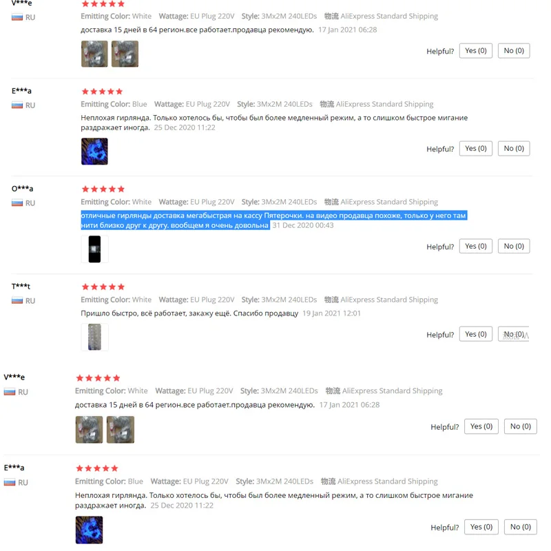 Профессиональный продавец и Красивая гирлянда, у меня была проблема с одной из гирлянд, но она очень приемлимая, и продавец отправил мне гирлянду с небольшими подарками, кроме того, очень профессиональный и быстрый ответ, еще раз спасибо