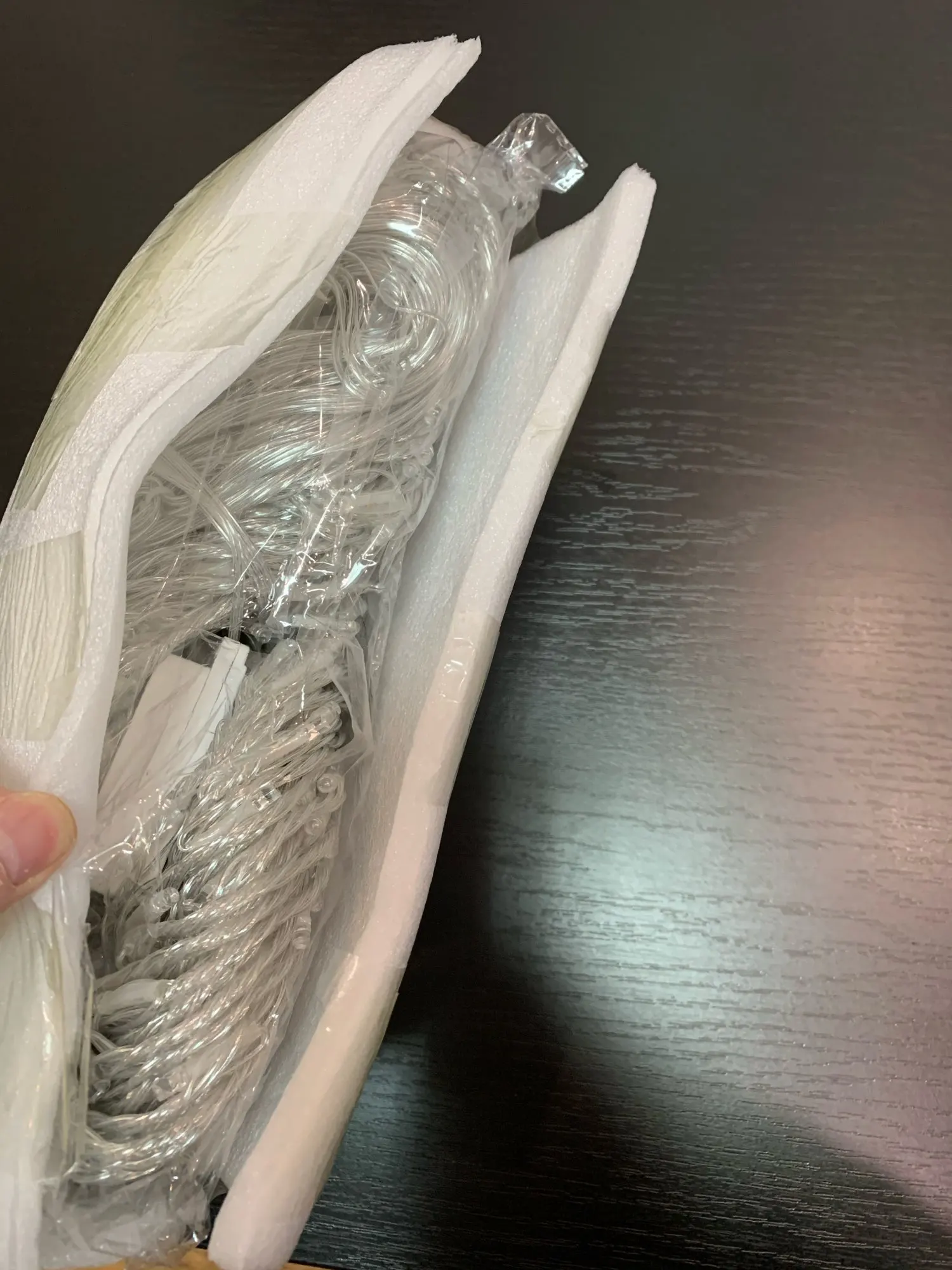 Гирлянда пришла быстро, но каждая нитка оказалась на 20 см короче чем указано в заказе. Но продавец без лишних слов пошел на встречу в решении проблемы. Присутствует небольшой запах, но думаю скоро выветрится.