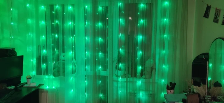 Гирлянда супер. Повесил на гордину, все в восторге. Один минус, нет длинны на 2.5 метра. либо 2 либо 3. пришлось брать 2м, т.к. три метра уже пополу будет стилиться. ну вроде и так нормально, но 2.5 былобы вообще бомба.