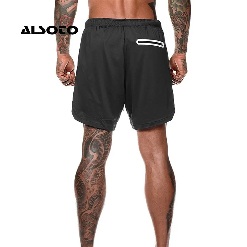 Новые мужские шорты для бега 2 в 1, двухслойные быстросохнущие спор...